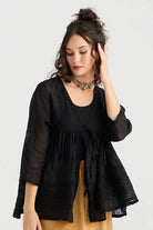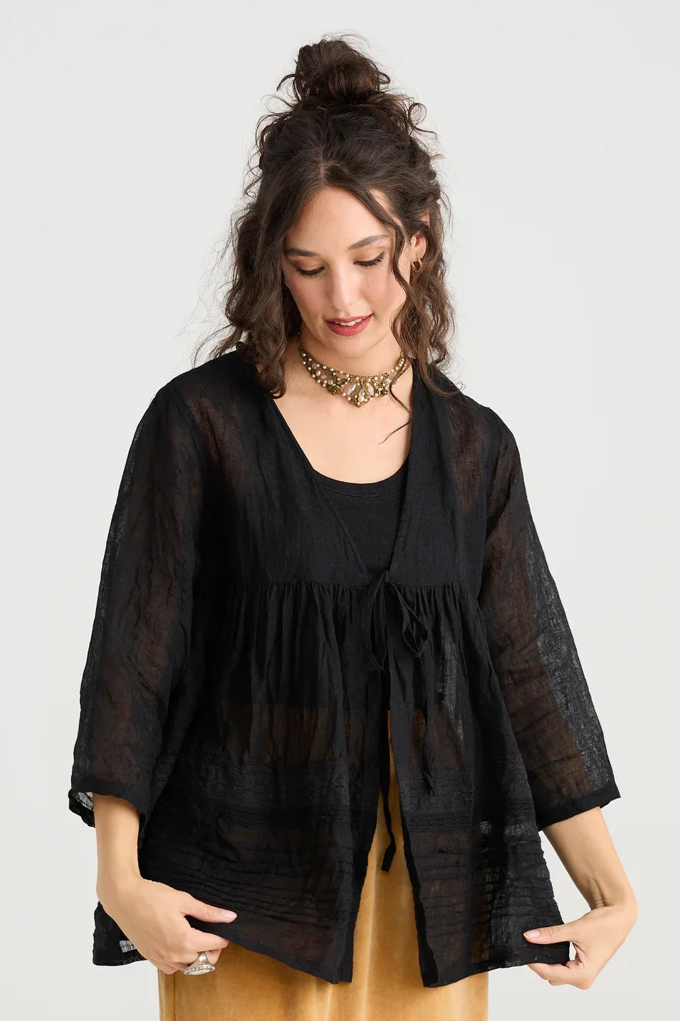 Elodie Short Linen Gauze & Lace Jacket | Liquorice