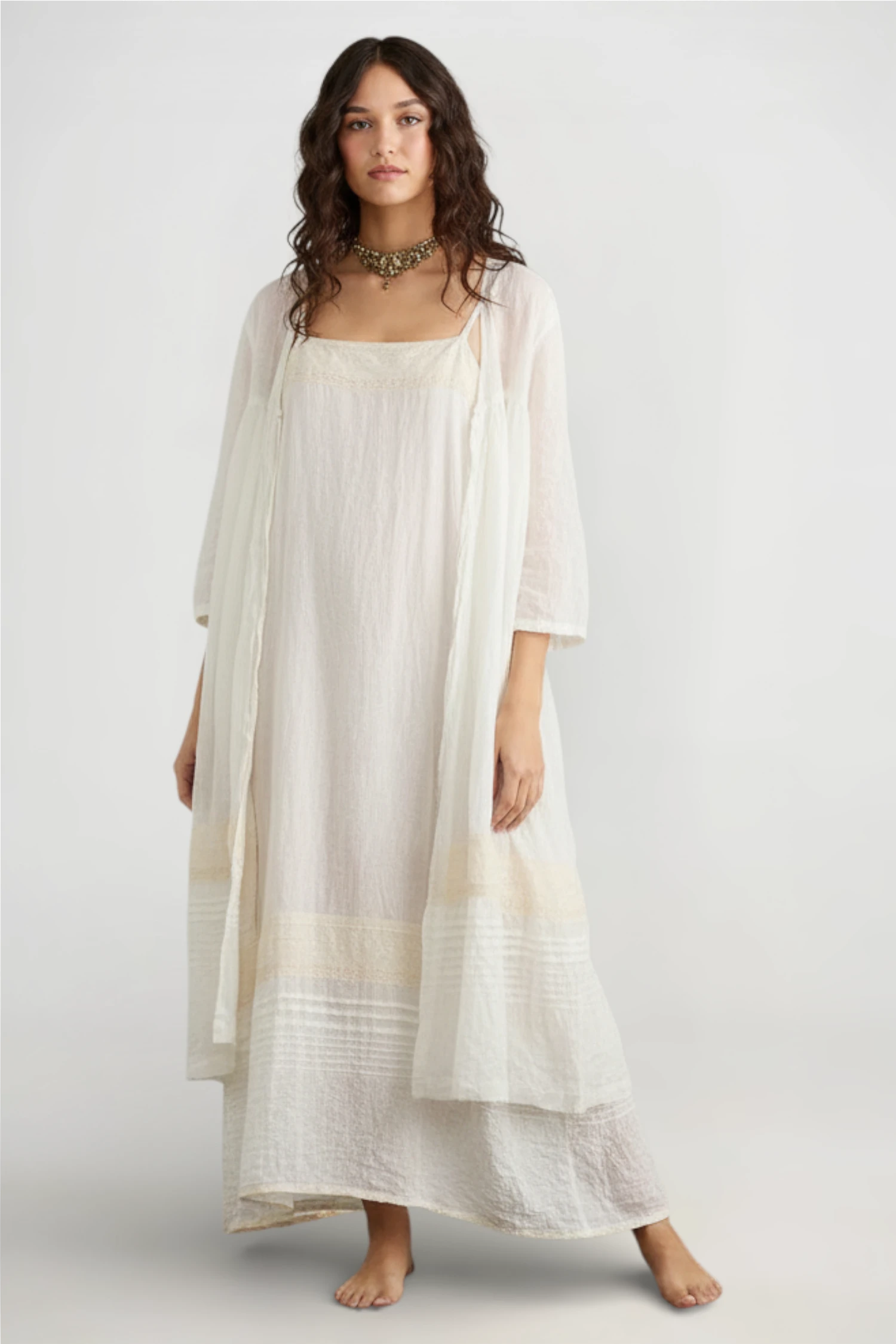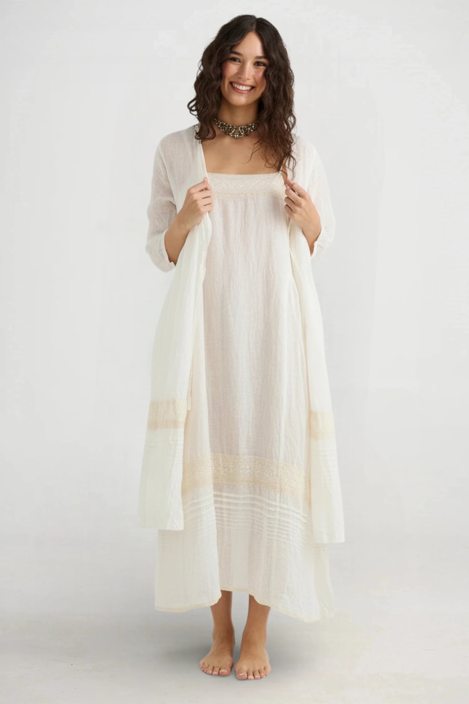 Enchantress Long Linen Gauze Coat | Cream Puff
