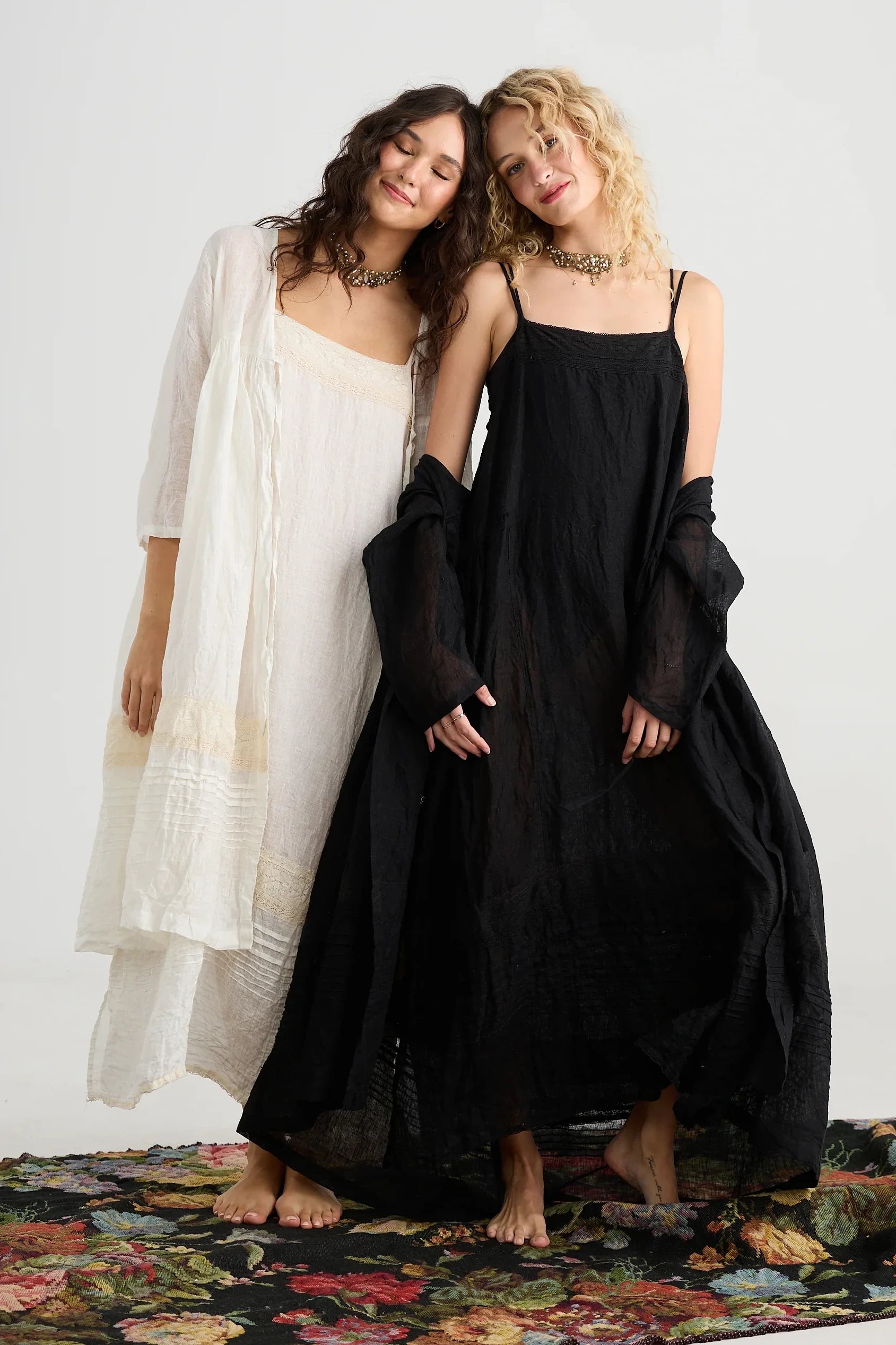 Enchantress is a true statement piece. Dramatic, theatrical, poetic but also achingly Romantic. With its soft folds of luxurious linen gauze the coat is enriched with exquisite detailing - pintucks and vintage lace prettily adorn it and the simple fine ties bring it together at the front. Truly a sumptuous piece. Perfect for special occasions and weddings.
