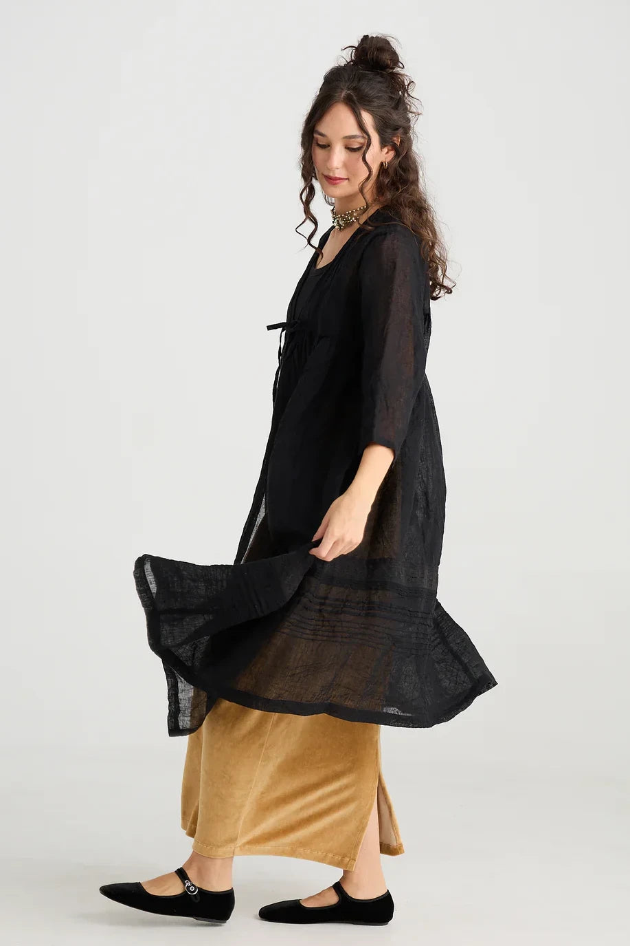 Enchantress Long Linen Gauze Coat | Licorice