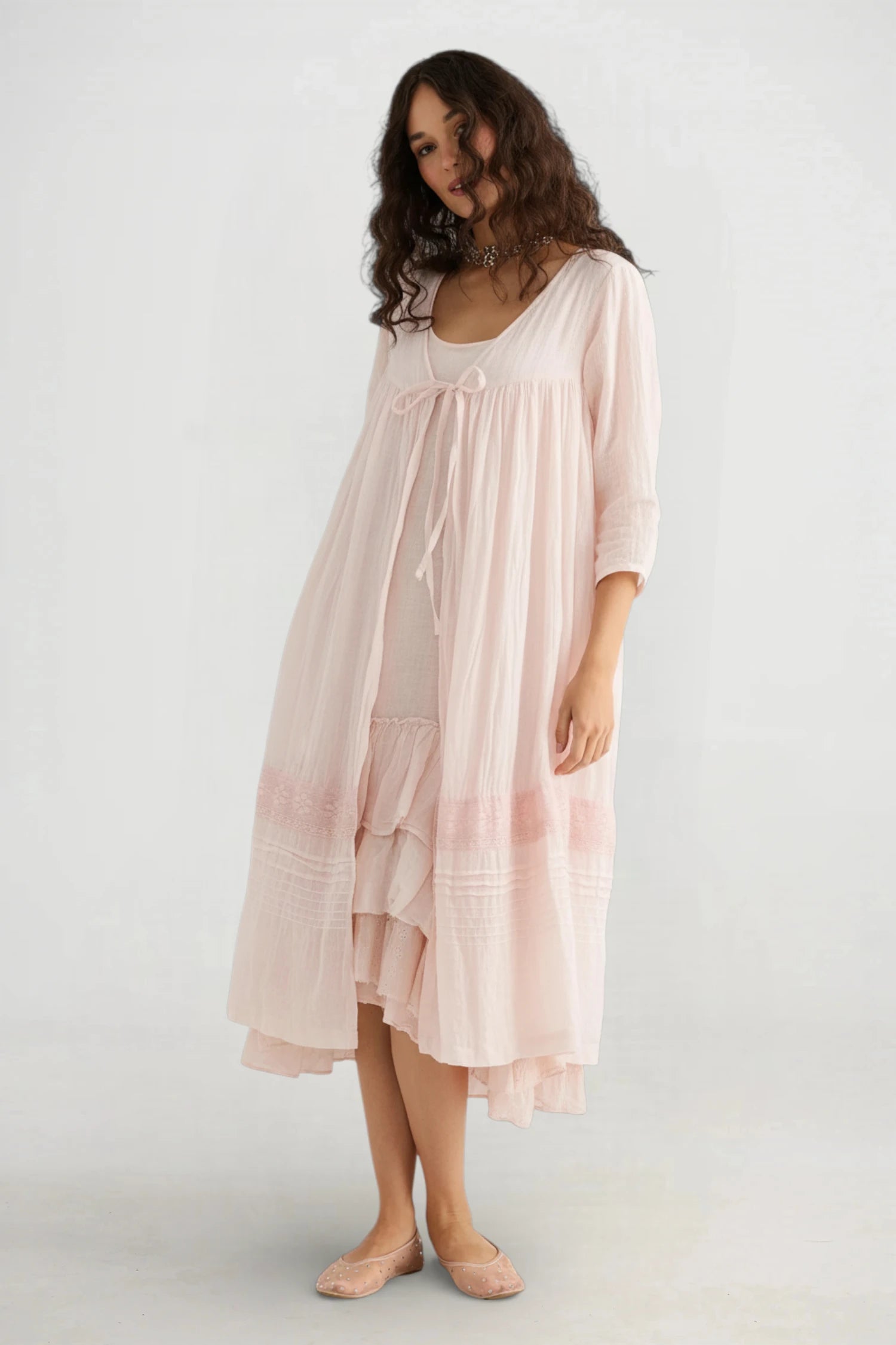 Enchantress Long Linen Gauze Coat | Powder Pink