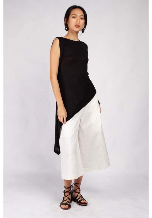 The Fra 3/4 pant is the ultimate summer pant. Made with a light weight cotton spandex, these pants provide a perfect fit while not restricting the bodies movements. With a wide waist band and culotte leg that finishes below the knee, the Fra pant is cool and comfortable. Wear with sandals and a tee or dress them up with boots, and the Fra Top for a tailored look.
