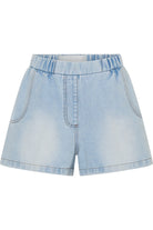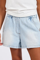 Funks High Waist Elasticated Flippy Denim Shorts | Blue Latte