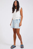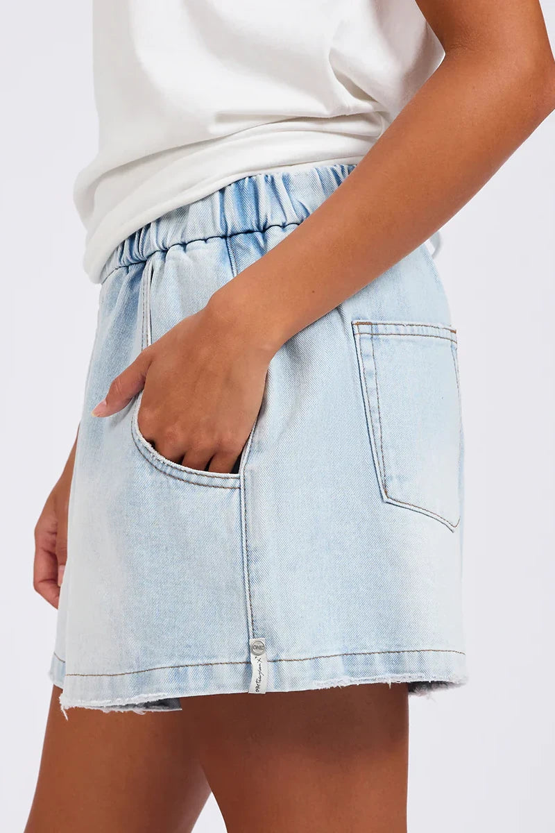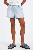 The BLUE LATTE FUNKS HIGH WAIST ELASTICATED FLIPPY DENIM SHORTS bring retro energy and all-day comfort. Relaxed, playful, and effortlessly cool — they’re made for those who live in denim.