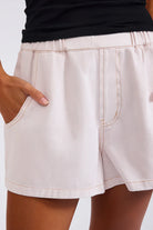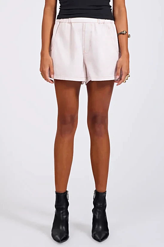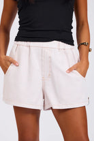Funks High Waist Elasticated Flippy Denim Shorts | Pink Tint