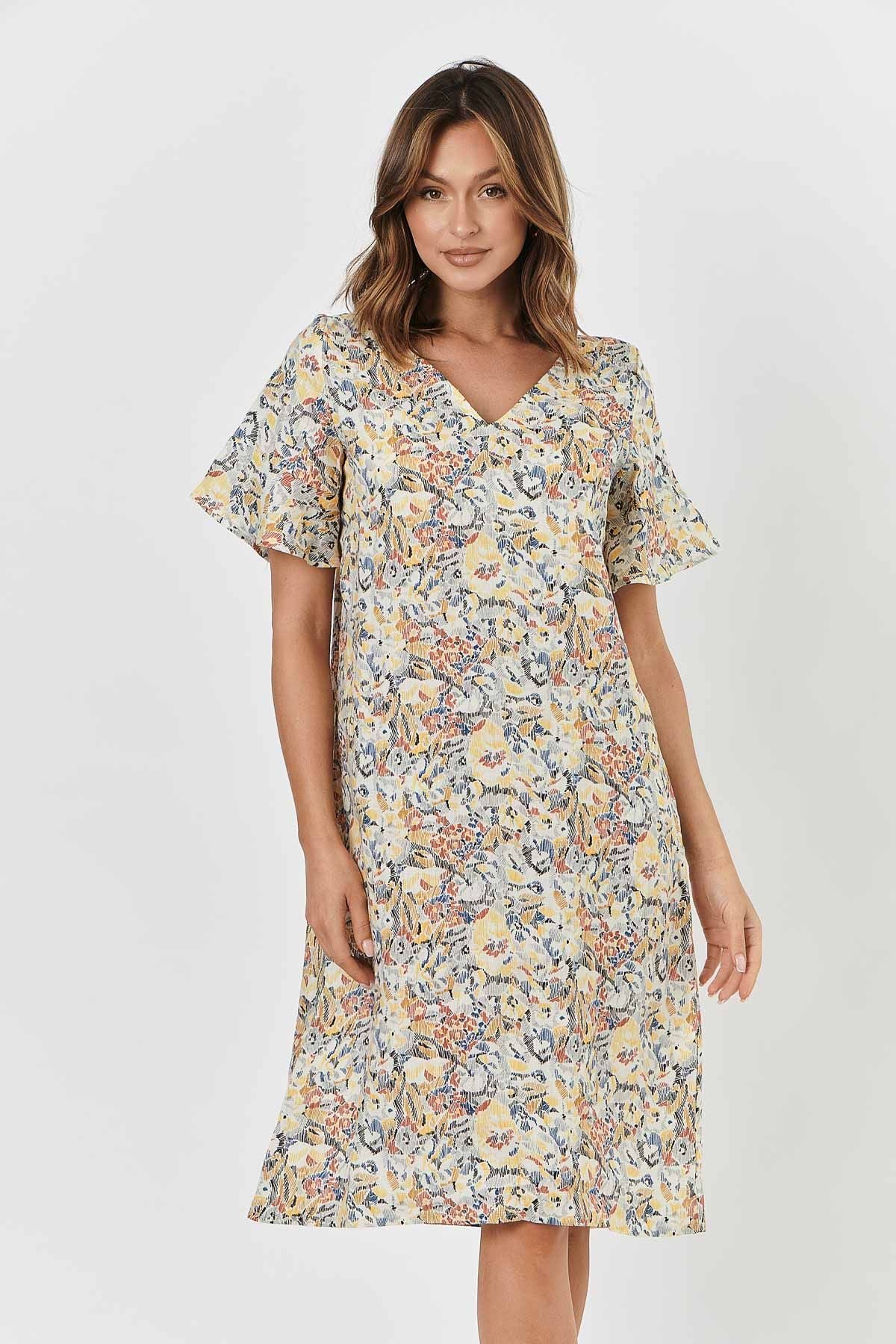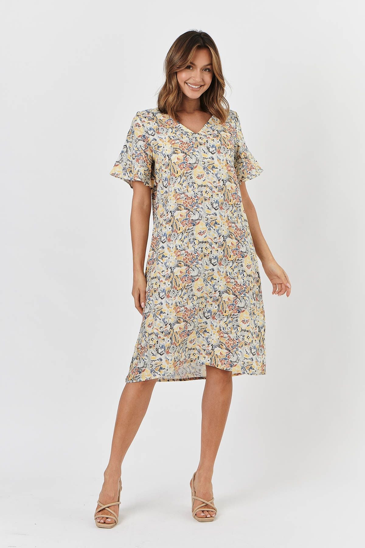 Sleek and classic, with V-neckline and soft above elbow sleeves for complete coverage of upper arm, this dress is a timeless piece that you will wear for years to come. This flattering dress looks great styled with a pair of heels and pearl earrings for an office-ready look, or with a pair of sandals and sun hat for summer-picnic perfection.