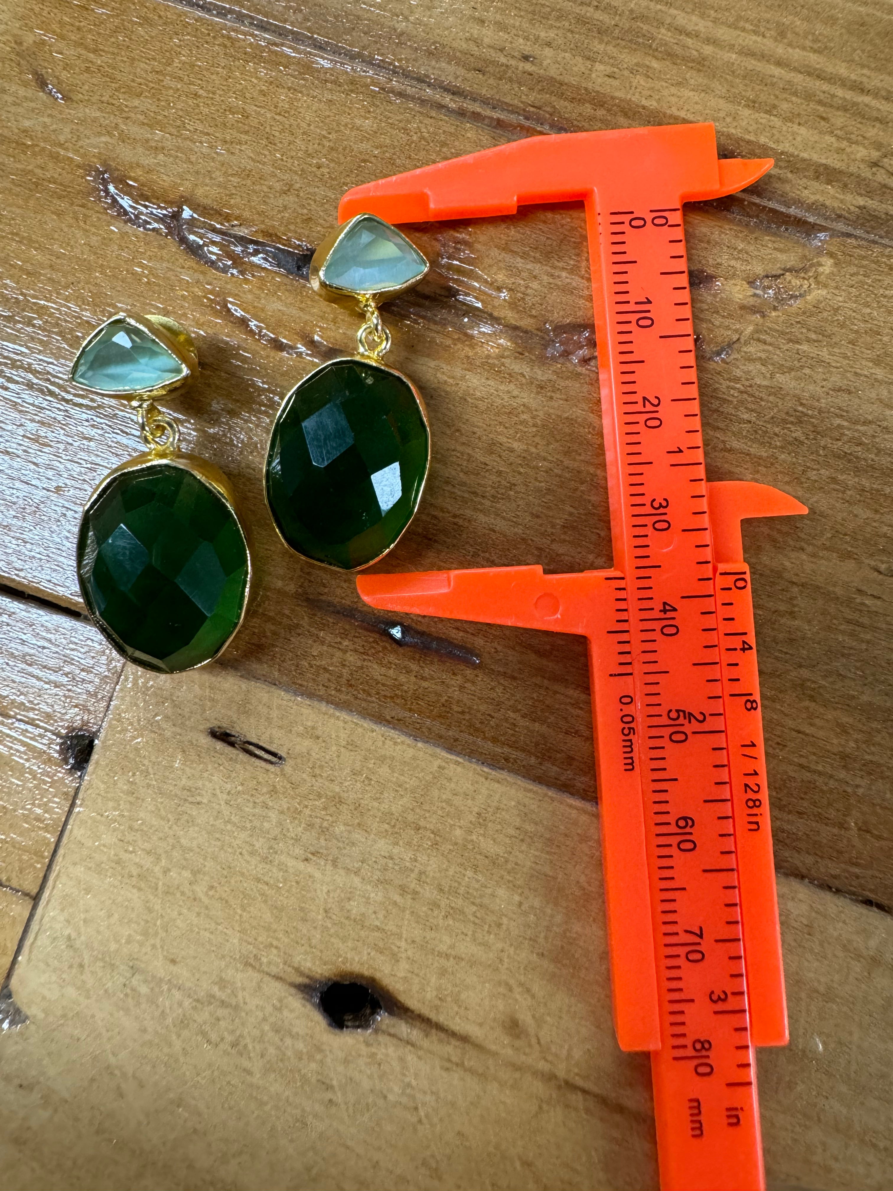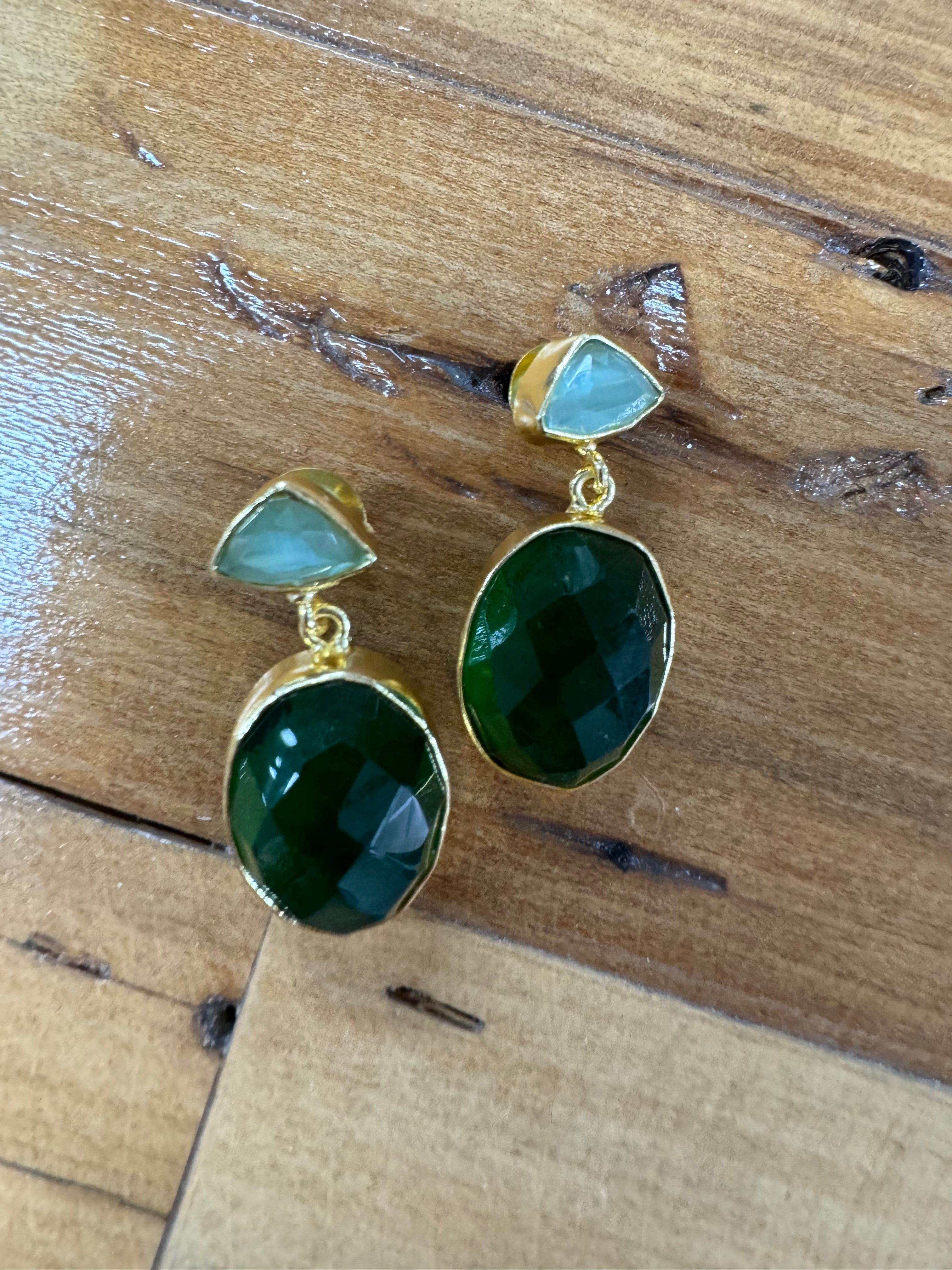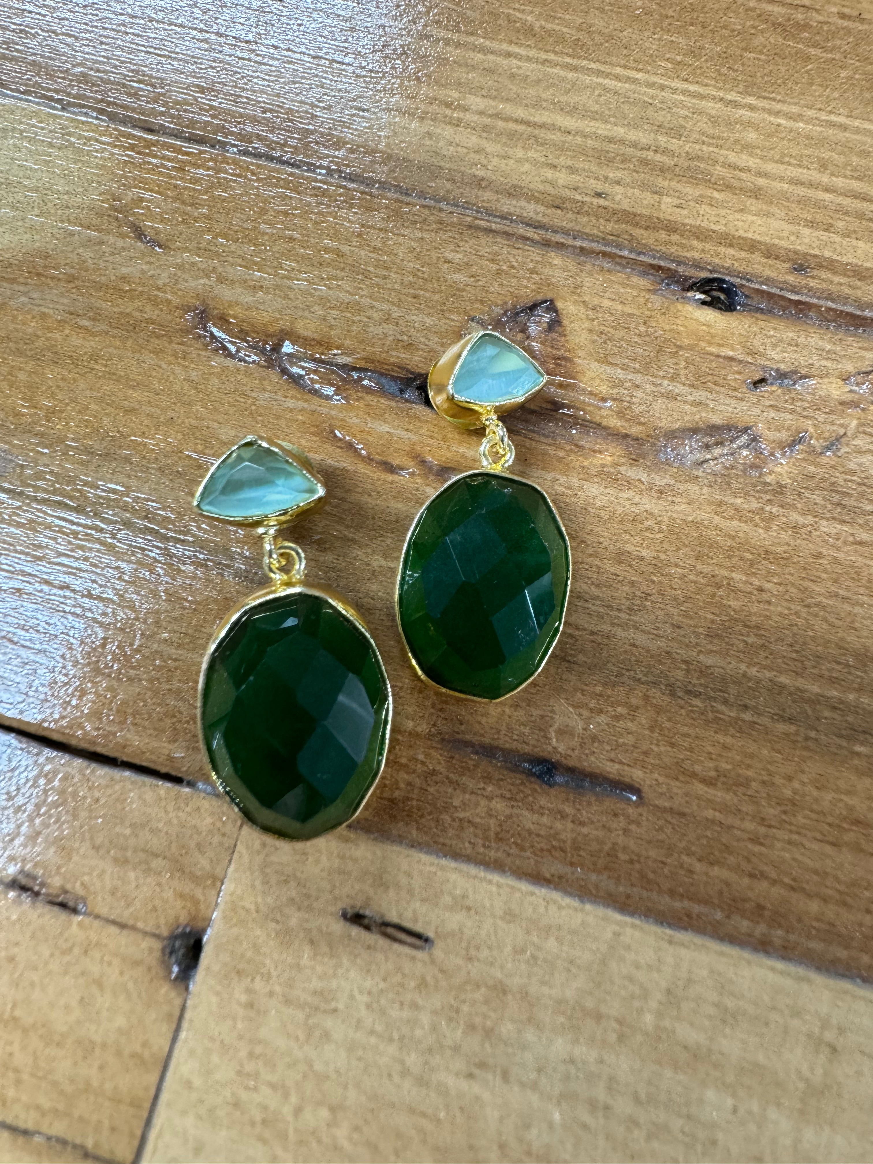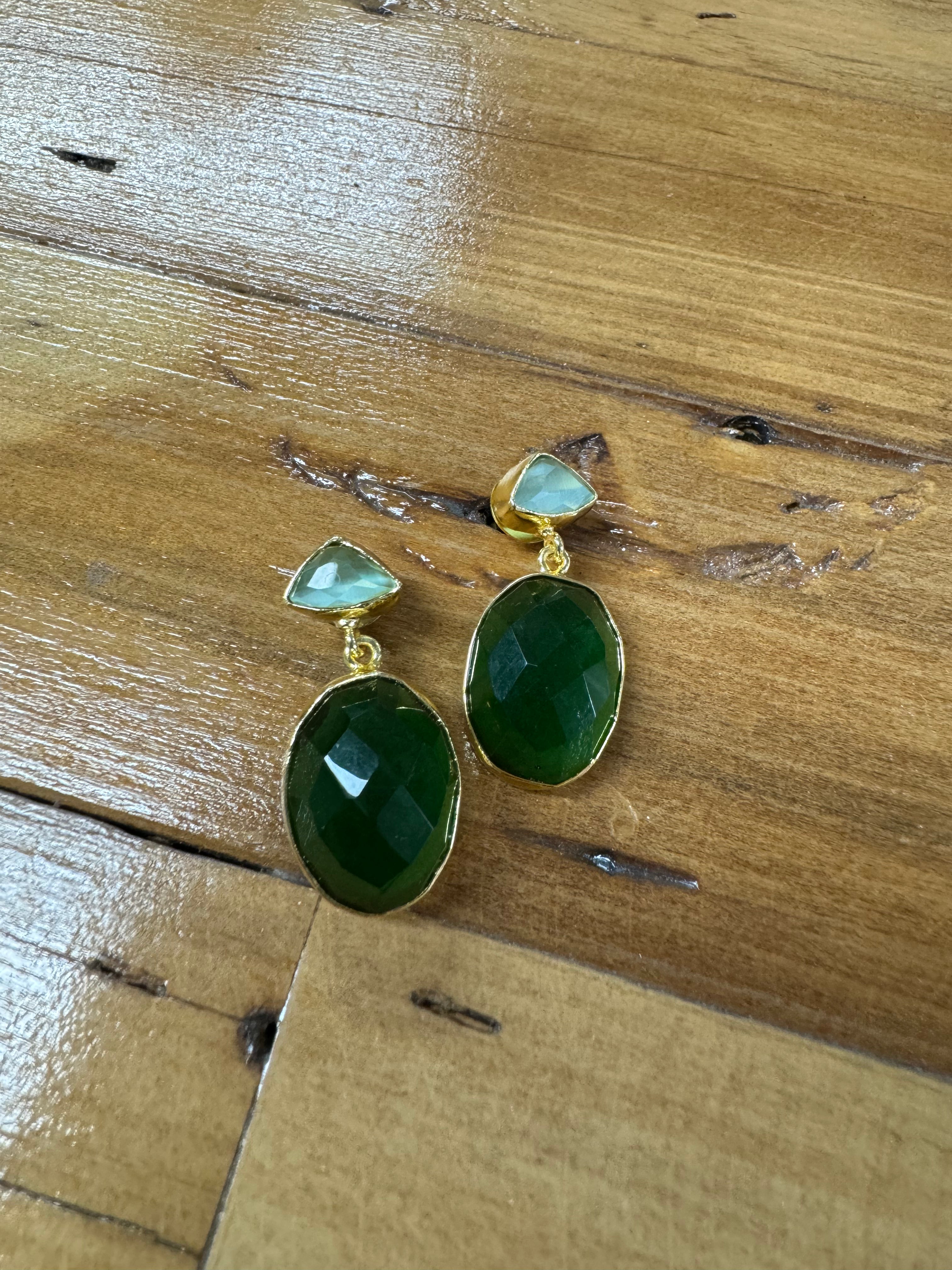 Elevate your look with our Mint Chalcedony and Emerald Onyx Oval Drops. A perfect fusion of tranquillity and subtle glamour.