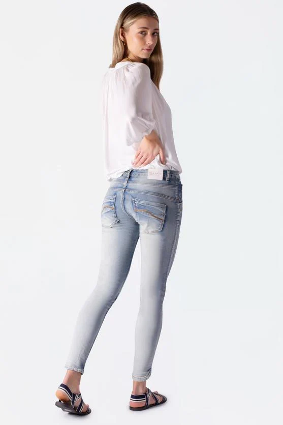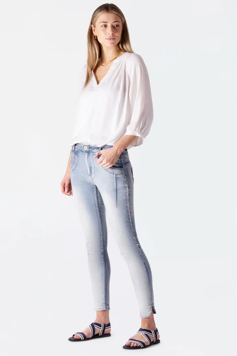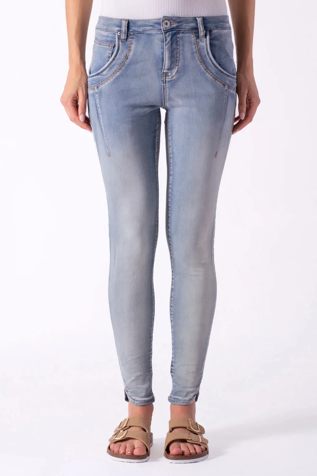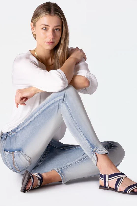 These jeans are sure to be on high rotation this season. A lightweight Blue Denim by Bianco with a gorgeous wash look and contrast stitching of light tan. Super softy and effortlessly cool and perfect for your Summer wardrobe.