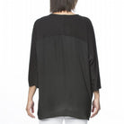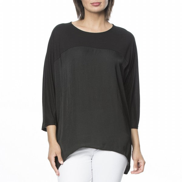 The Jersey Luxe Spliced Top by Hammock and Vine is your new season basic you will wonder how you could ever live without! In a light weight 'silk-touch' poly this easy pop over style features a stretch jersey yoke that extends down the batwing sleeve for added comfort and ease of movement and a roomy oversized fit to the bodice. Pair back with a slim leg pant for the latest in casual style. Models wear Size S and stand 178cm and 180cm tall.