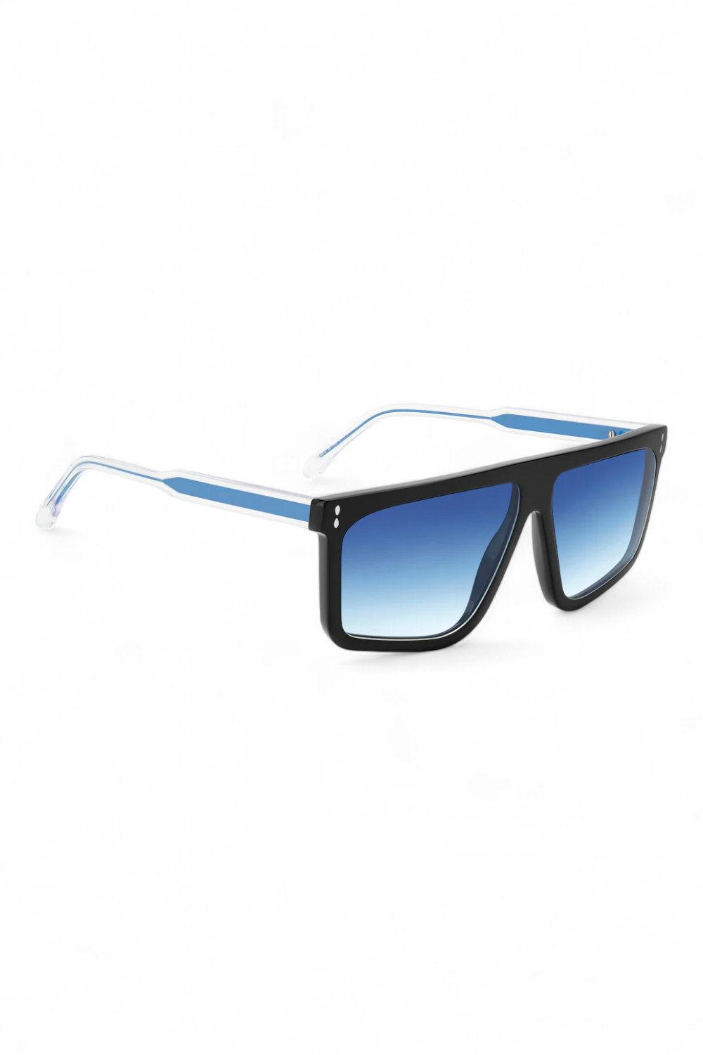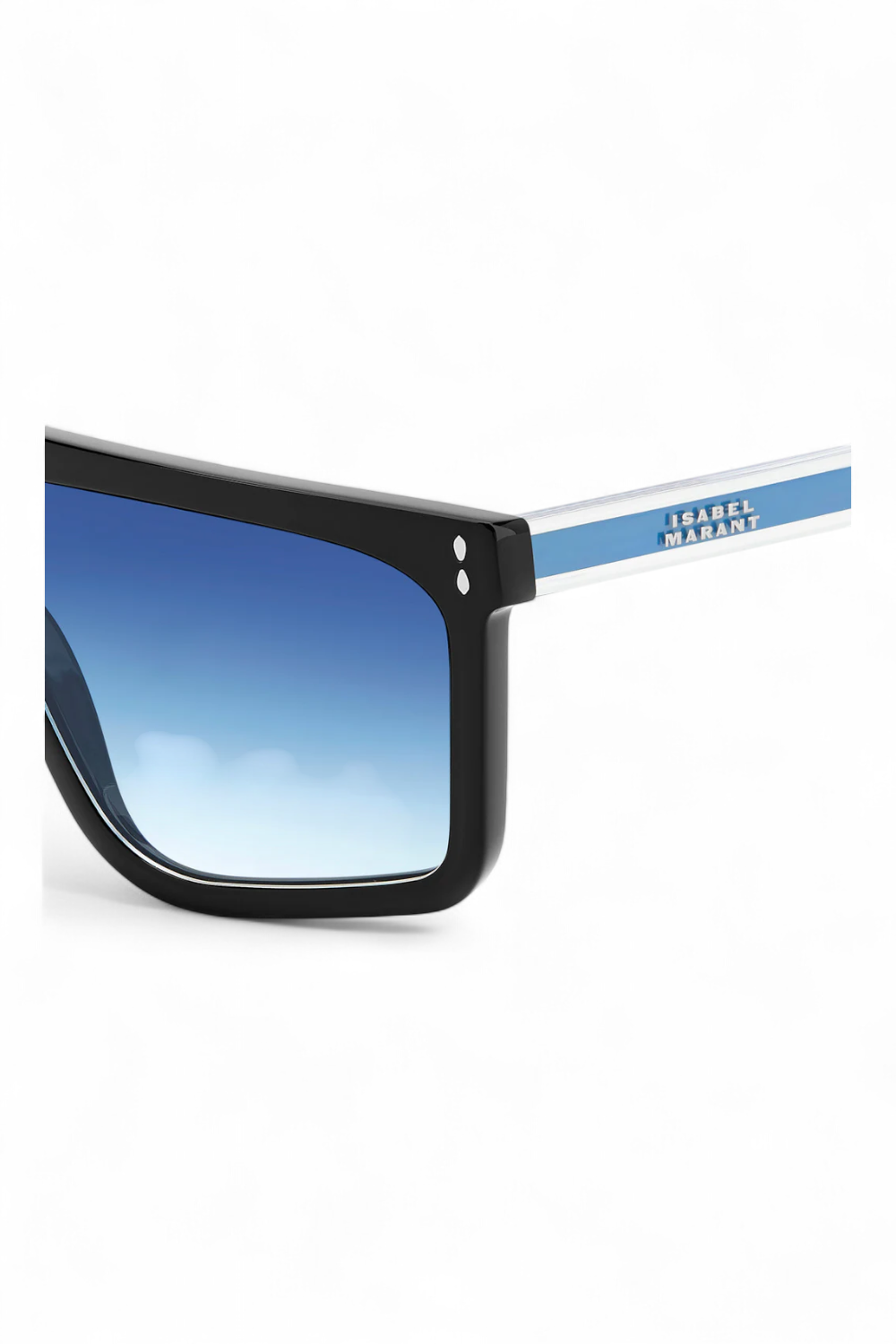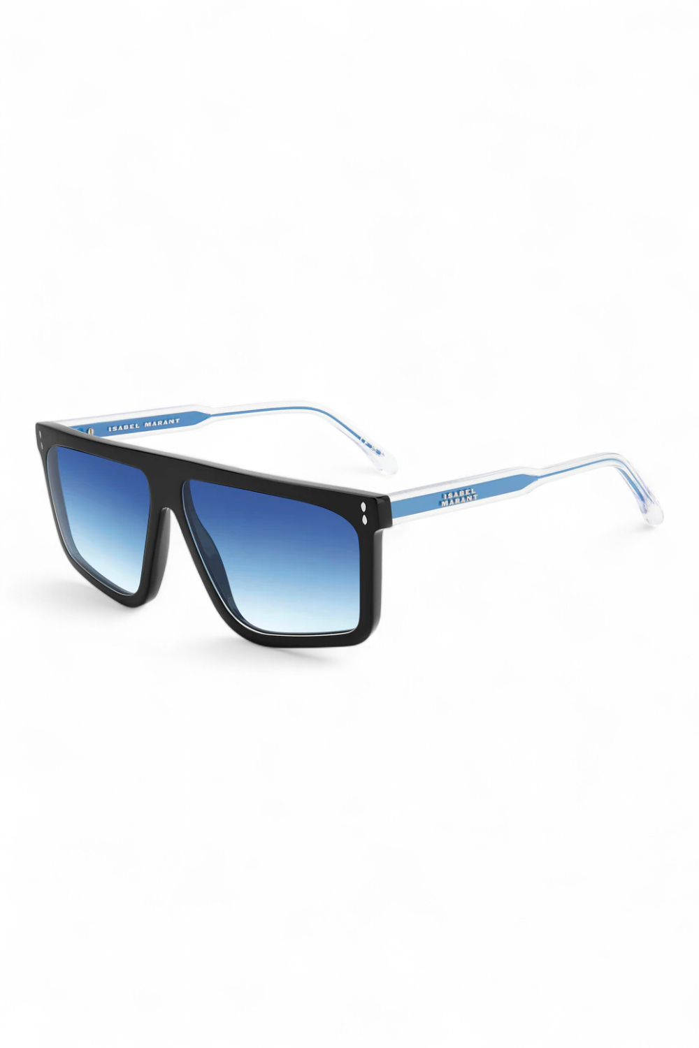 The In Love collection from Isabel Marant taps into its technicolour soul, spiced up with clear temples to reveal contrast metal cores in a playful expression of the brand's refreshing vision. Turning heads with an empowering flat-top silhouette, these ultra-modern sunglasses are embellished with exclusive logo lettering on the left temple. Leaf-shaped rivets and end tips reinforce the iconic fashion house's hallmark style codes.