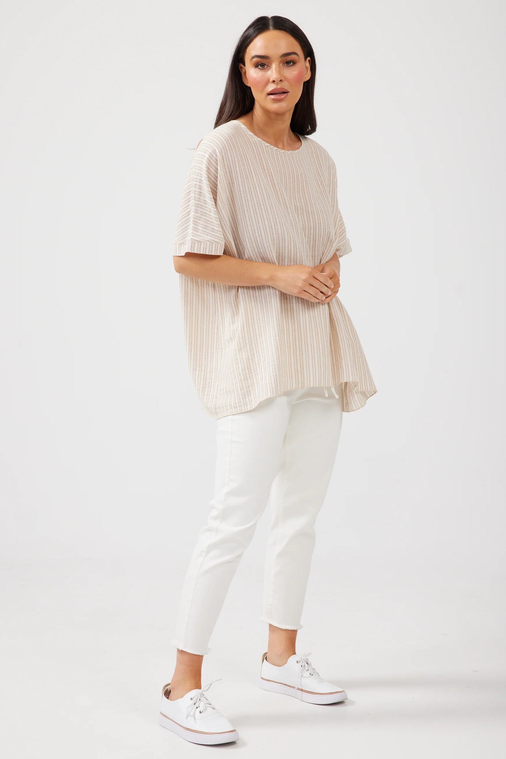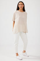 The Iris Top by The Shanty Corporation has been designed with wearability in mind. Featuring a round neck and floaty oversized fit, this top is the perfect summer style. Offered in a range of classic colours, and a gorgeous print too, our Iris Top is intended to be an easy addition to your current wardrobe faves.