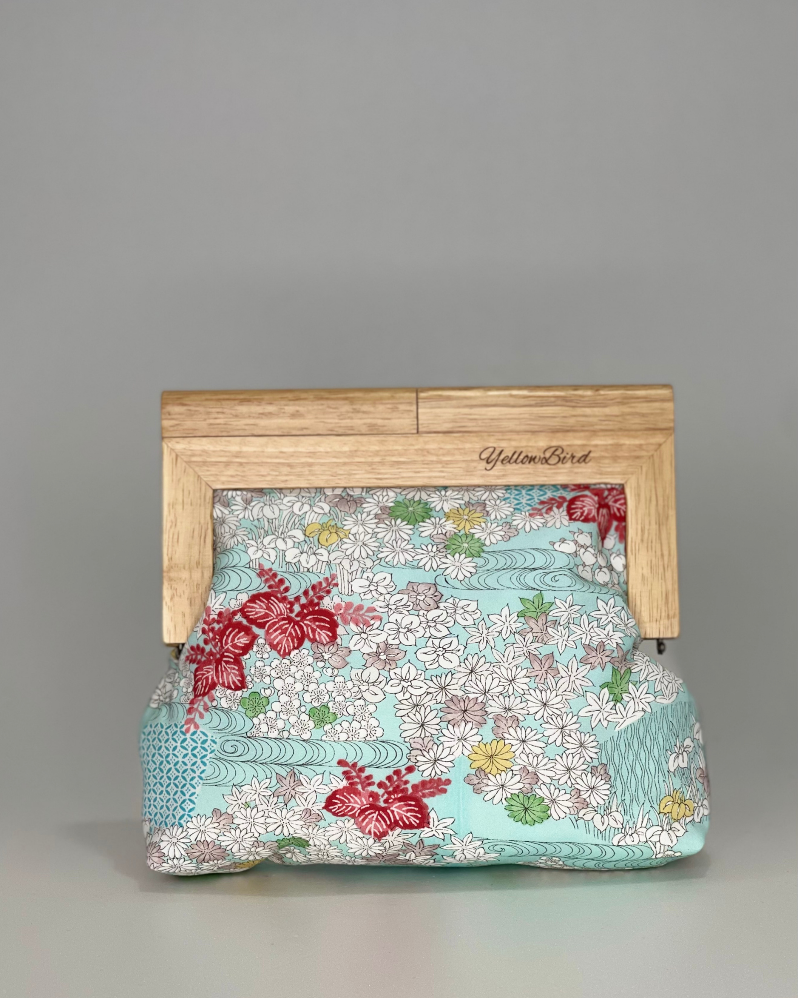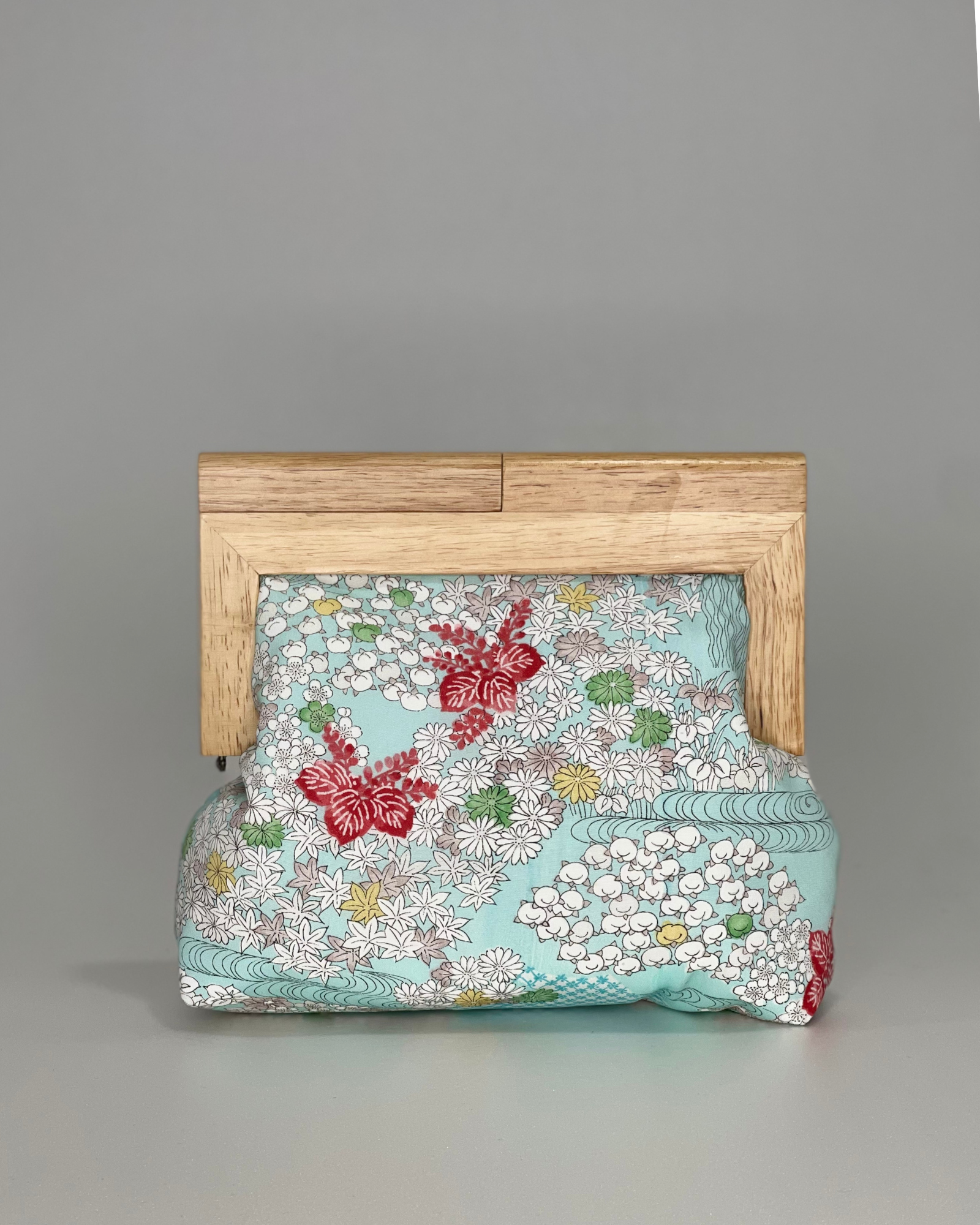 Japanese Flowers in Turquoise (Medium) Natural Frame - "Evelyn Clutch"