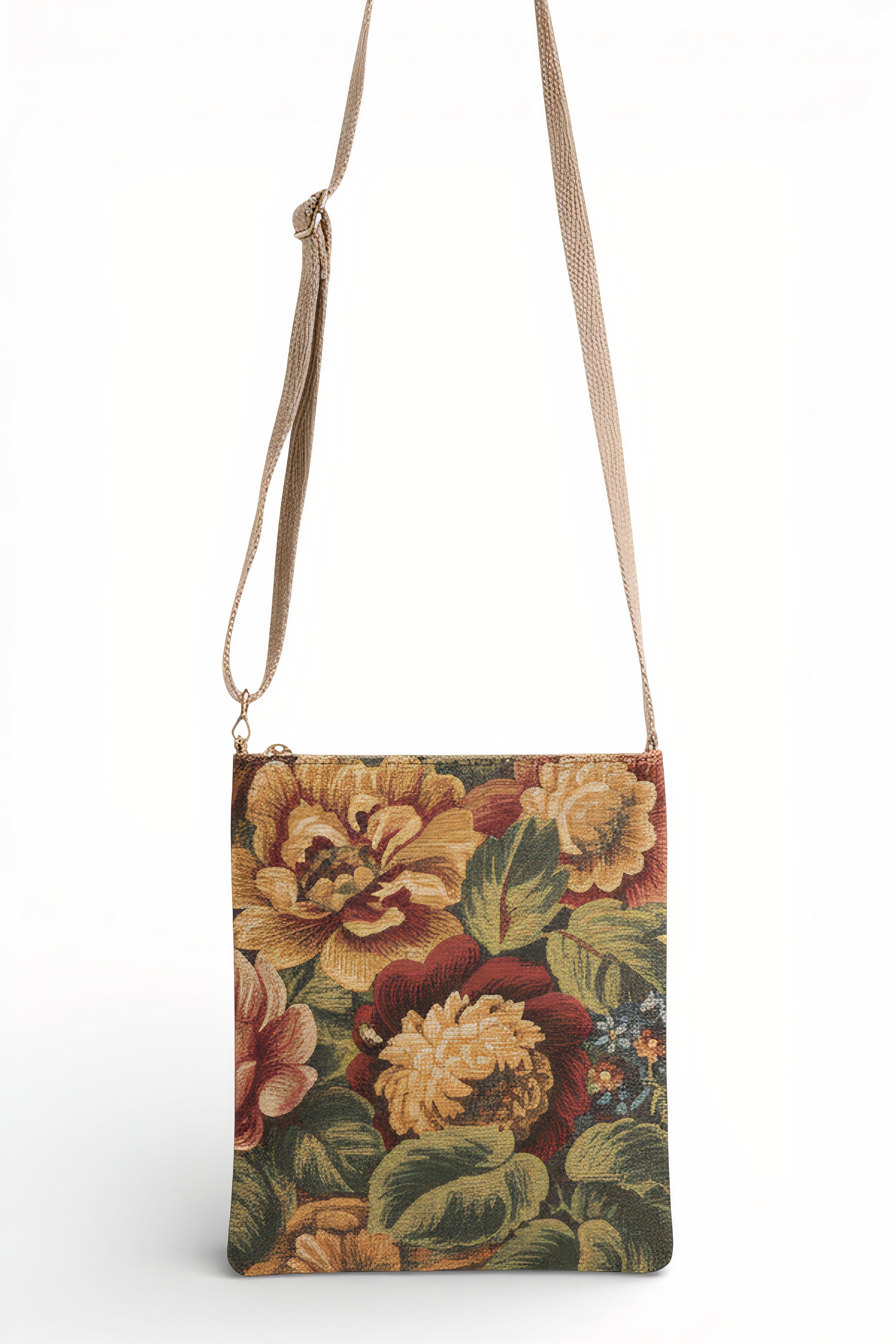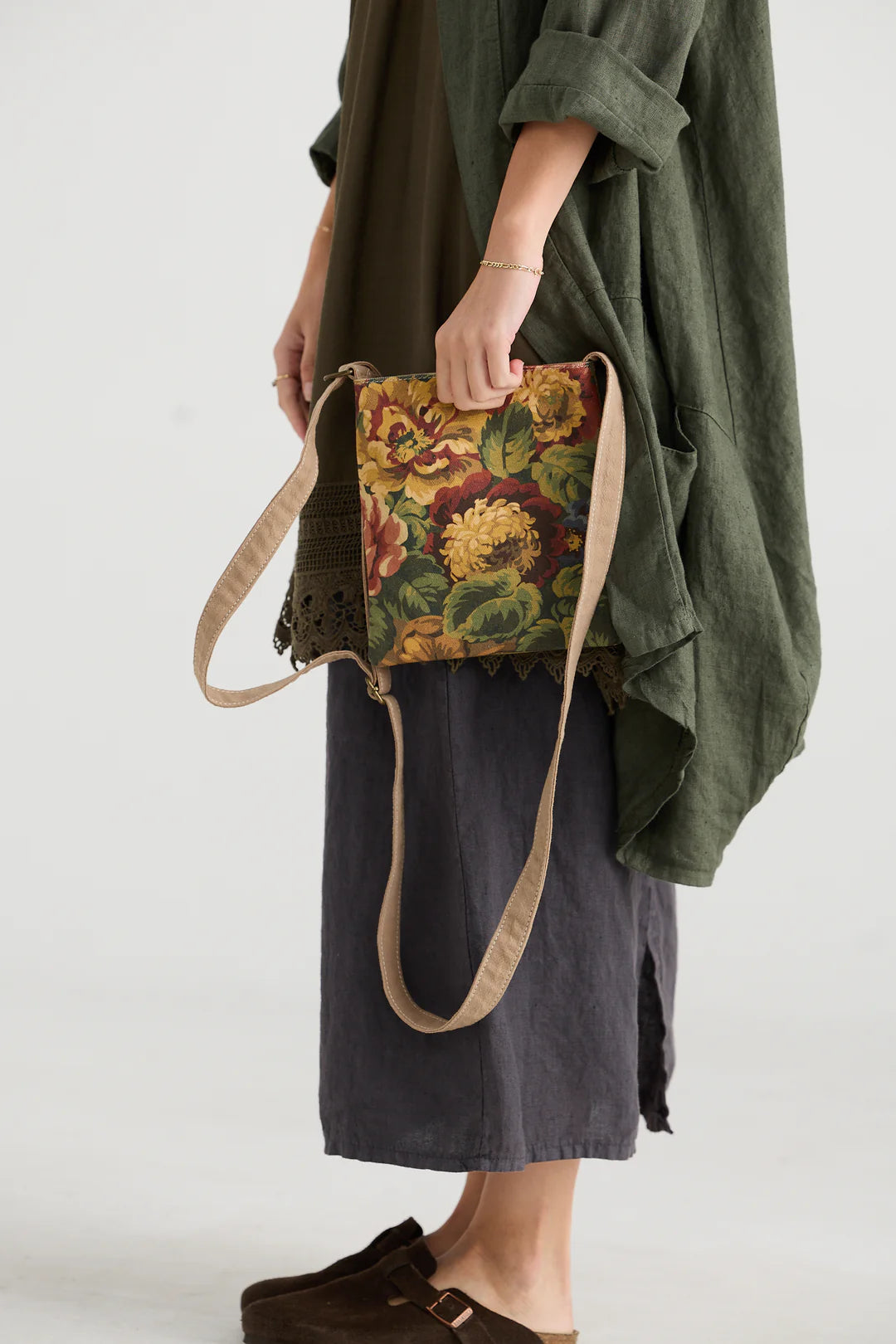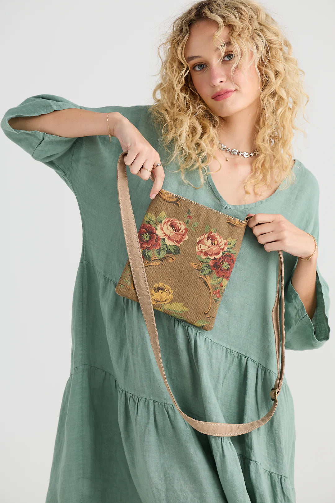 Kestrel Linen Crossbody Bag | Antique Rose Bouquet