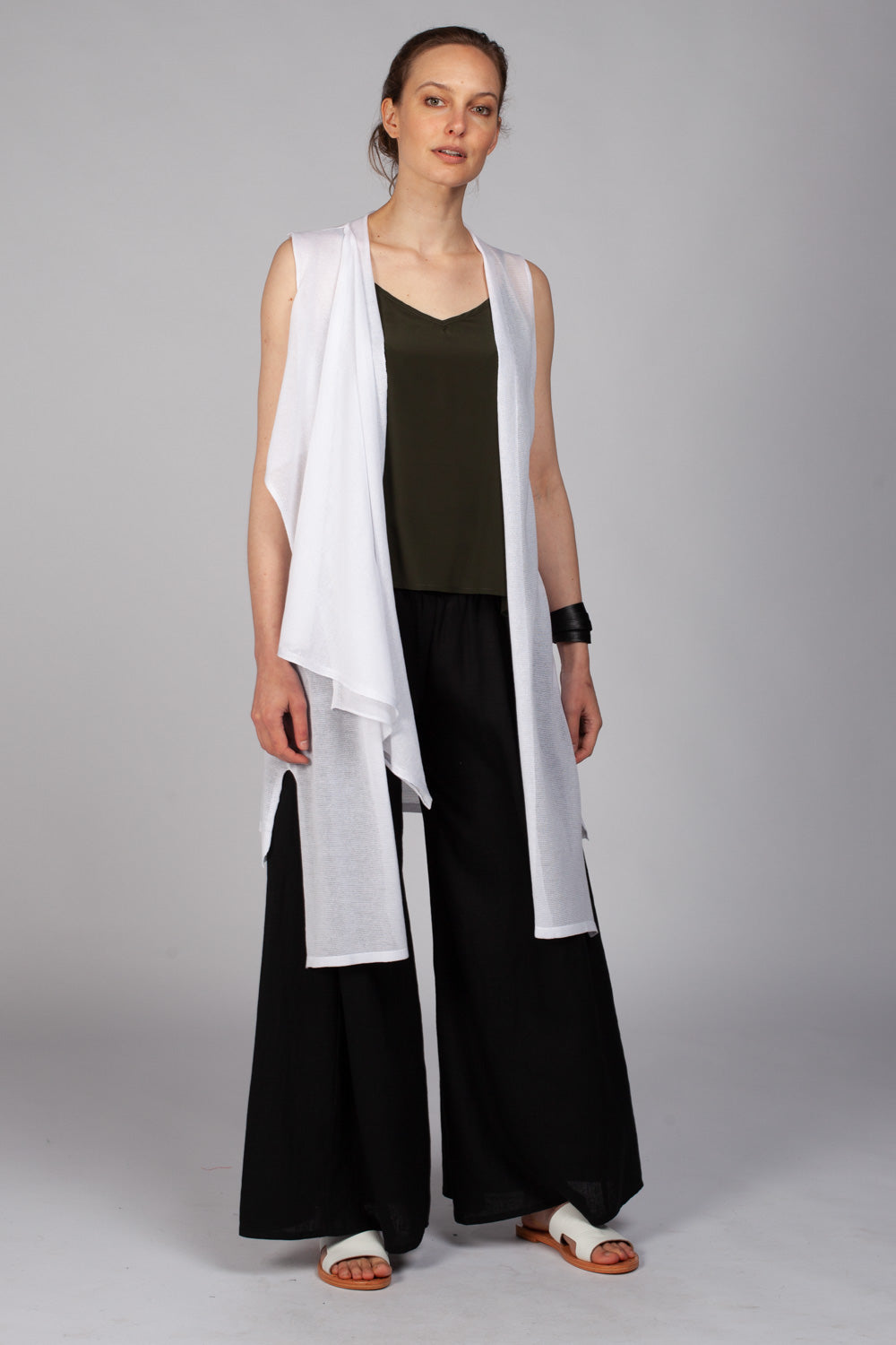 The Kokochi Full Length Pants are a wide leg light to medium-weight linen pant with a stretchy, folded black contrast waistband. These pants can comfortably be worn on the hips and finish at the ankle. They are easy to care for and need no ironing, creating the perfect crushed look. A staple piece this season, the linen Kokochi Pants are perfect to pair with the Kokochi Loose Top.