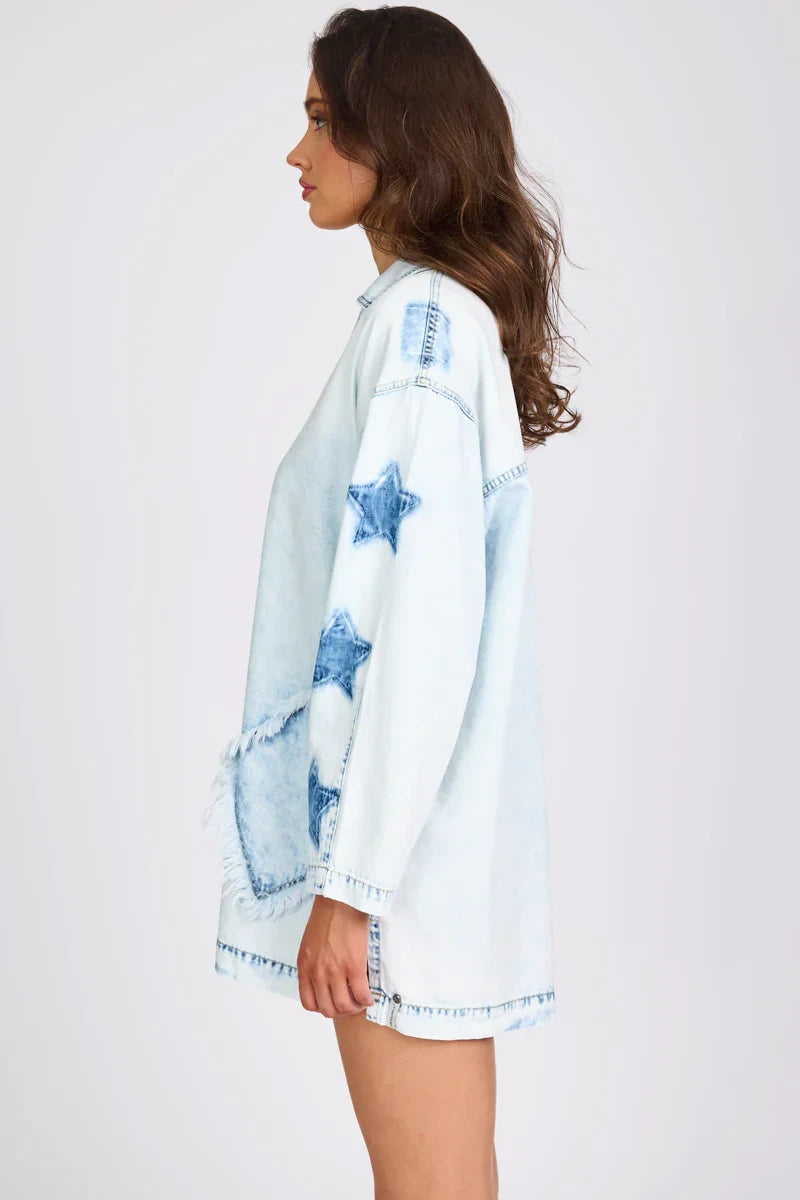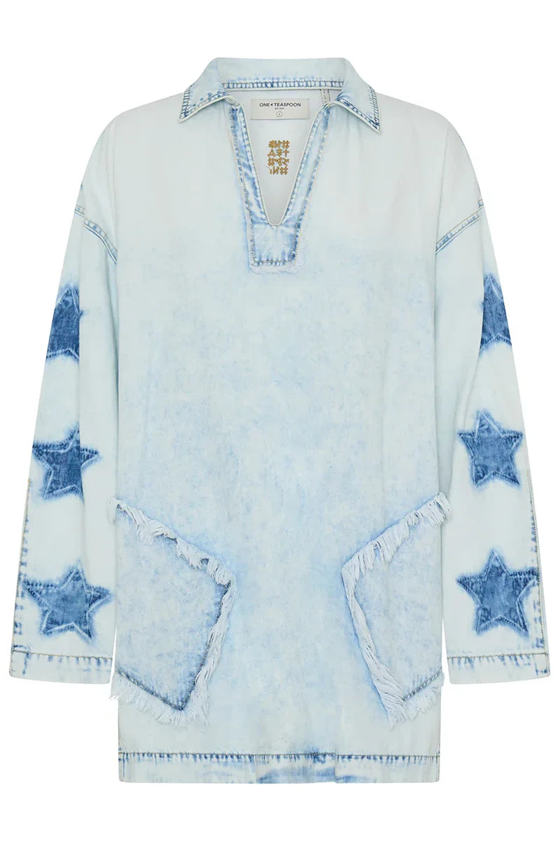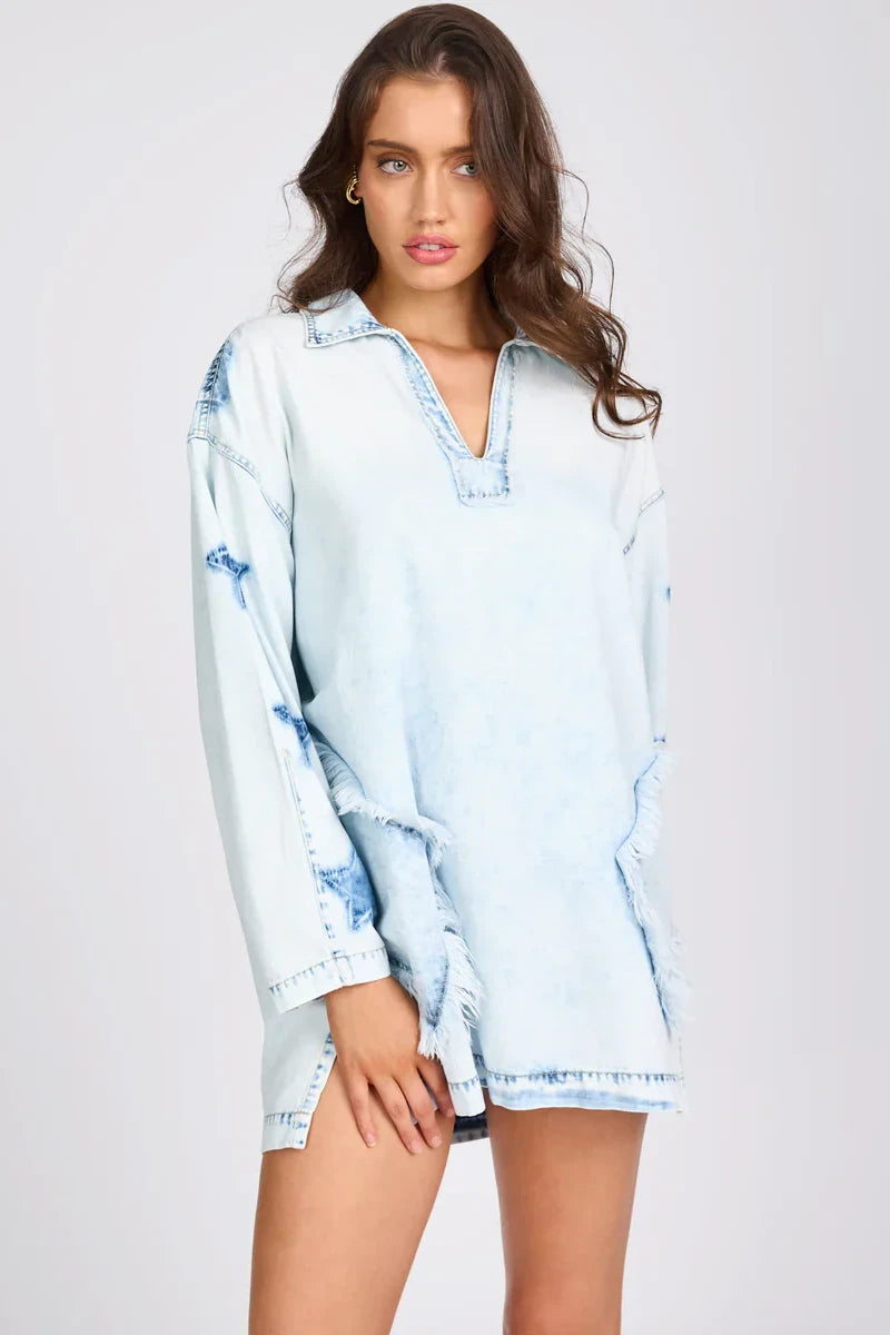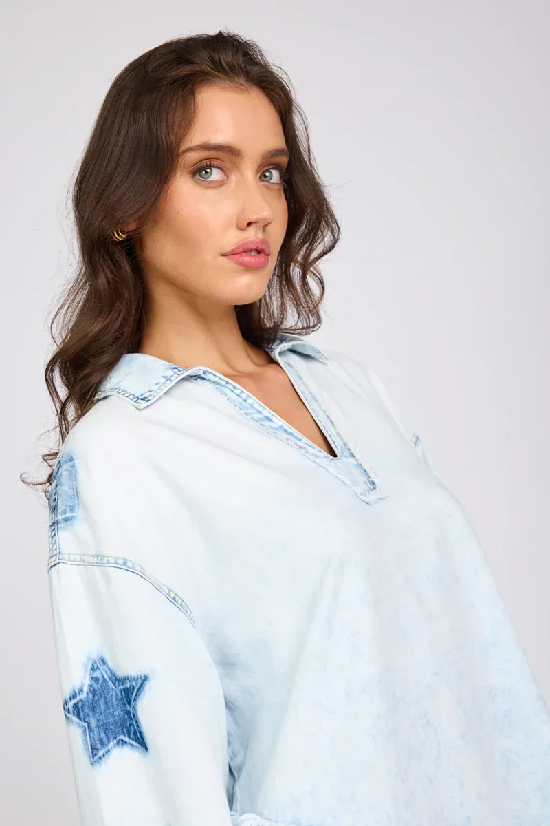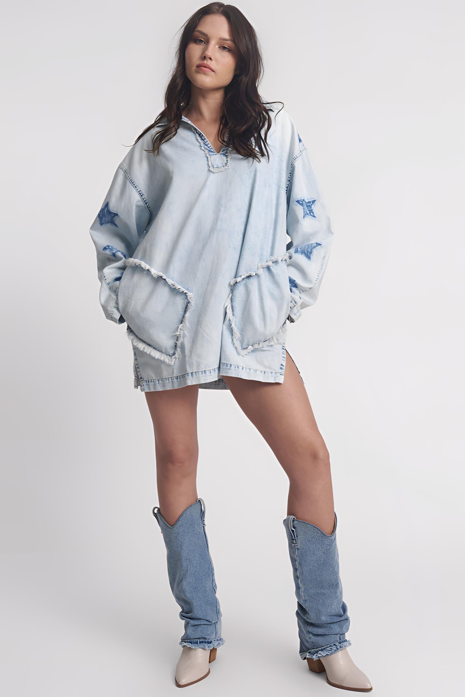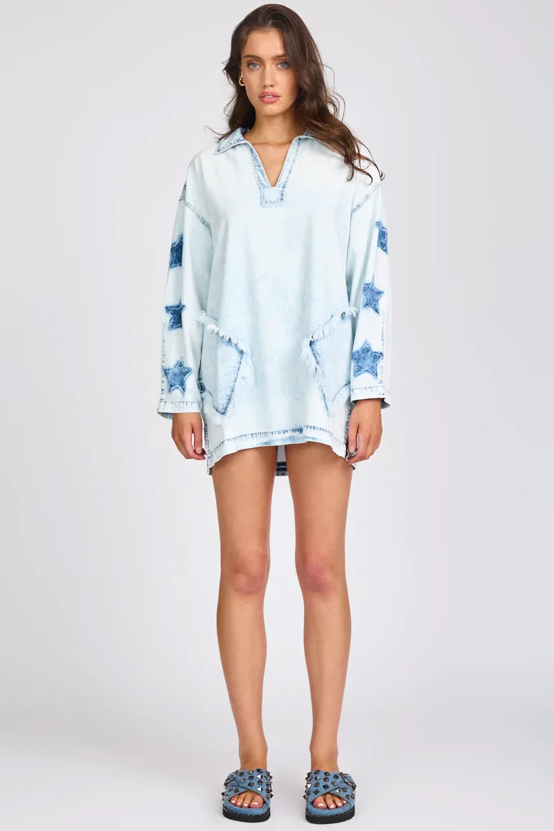 Le Captain Star Pullover Denim Shirt Dress | Depeche Blue