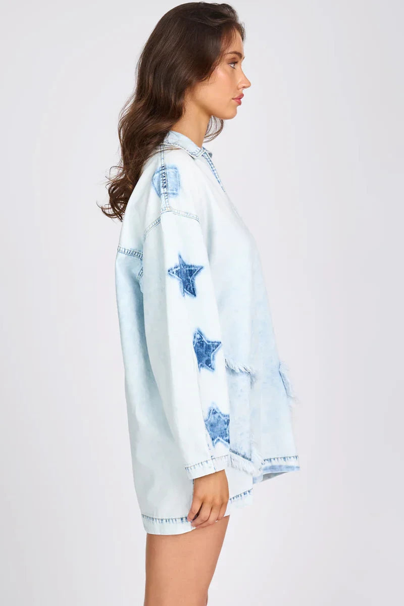 Take charge with the LE CAPTAIN STAR PULLOVER DENIM SHIRT DRESS.