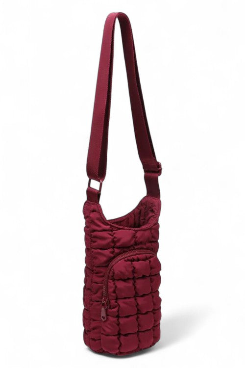 Introducing the Let It Flow Quilted Puffer Water Bottle Crossbody Bag—a fashion-forward essential for all active women! Crafted with care, this bag seamlessly combines fashion and function. Its compact design ensures you stay hydrated on the move, making it your ideal companion for busy days. Carry your water bottle in the center compartment, store your cell phone in the backside slip pocket, and keep your personal essentials organized in the front zippered compartment. Elevate your fashion game while prioritizing health—hydrate in style!