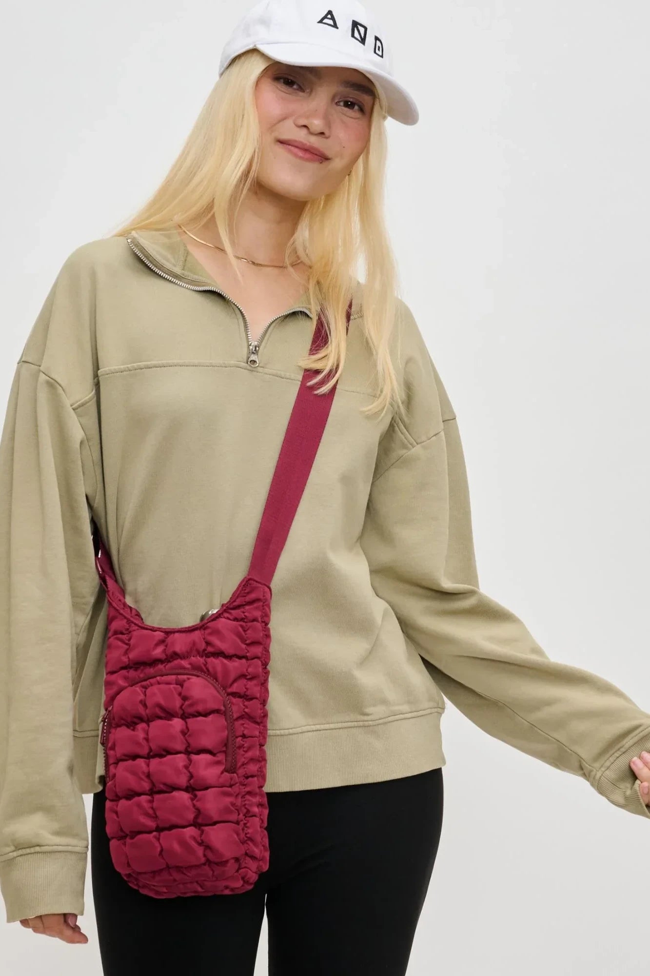 Let It Flow Quilted Puffer Crossbody | Burgundy