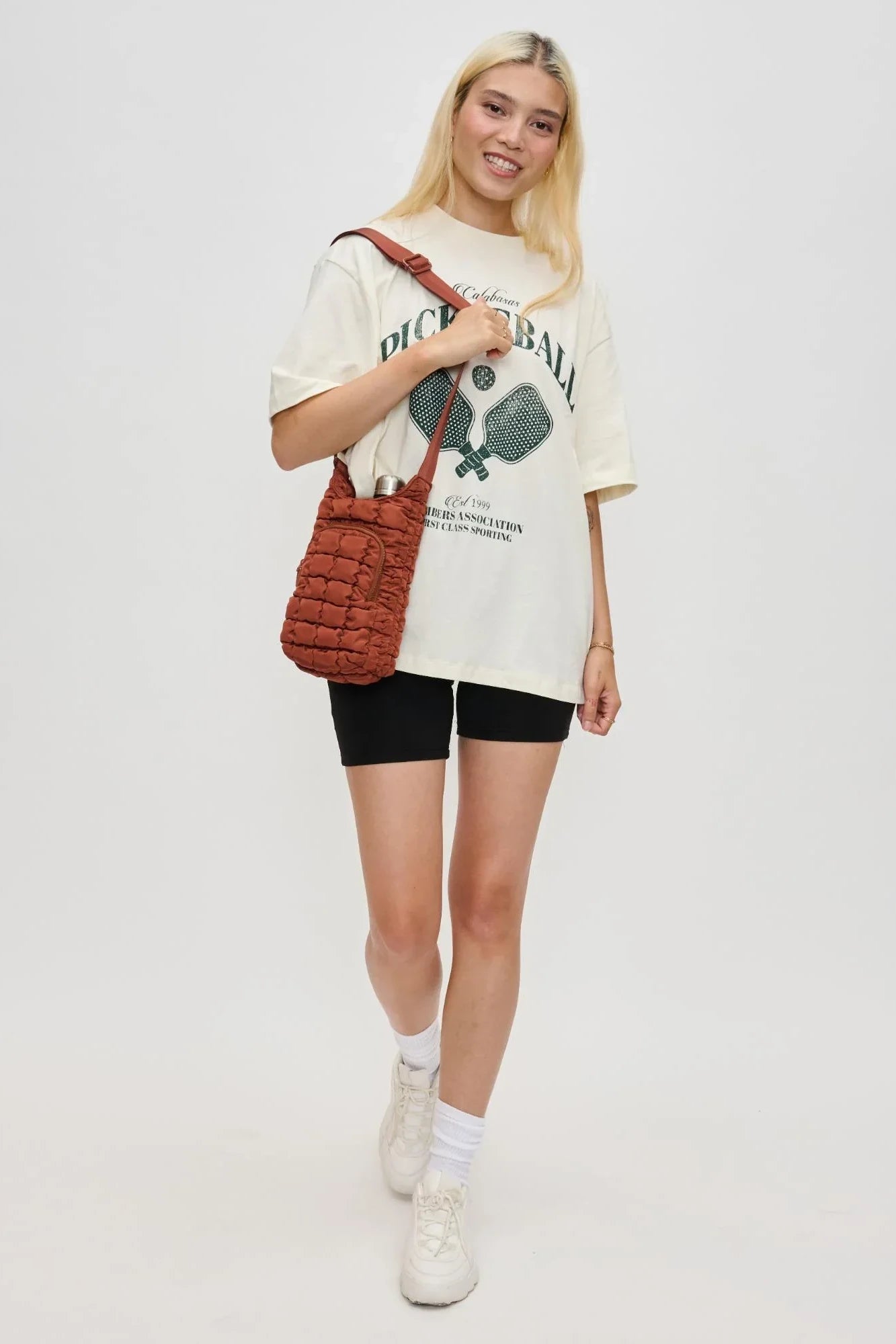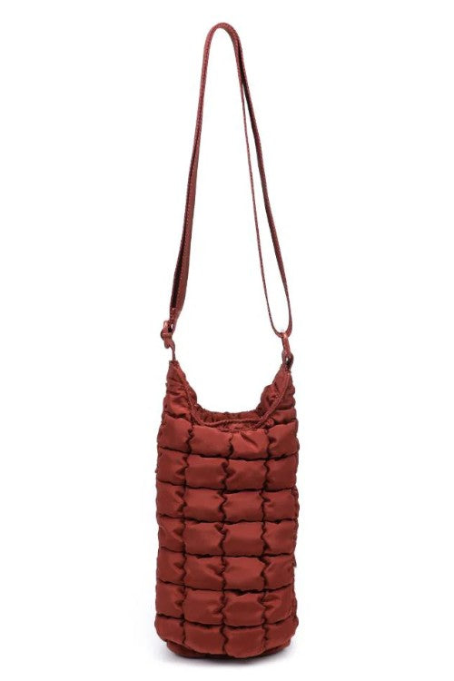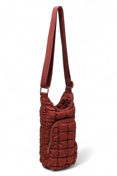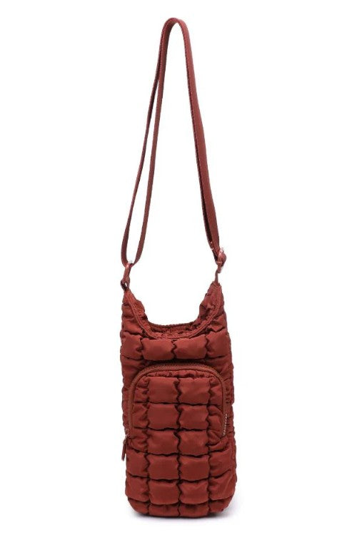 Introducing the Let It Flow Quilted Puffer Water Bottle Crossbody Bag—a fashion-forward essential for all active women! Crafted with care, this bag seamlessly combines fashion and function. Its compact design ensures you stay hydrated on the move, making it your ideal companion for busy days. Carry your water bottle in the center compartment, store your cell phone in the backside slip pocket, and keep your personal essentials organized in the front zippered compartment. Elevate your fashion game while prioritizing health—hydrate in style!