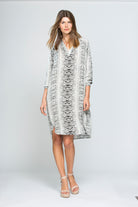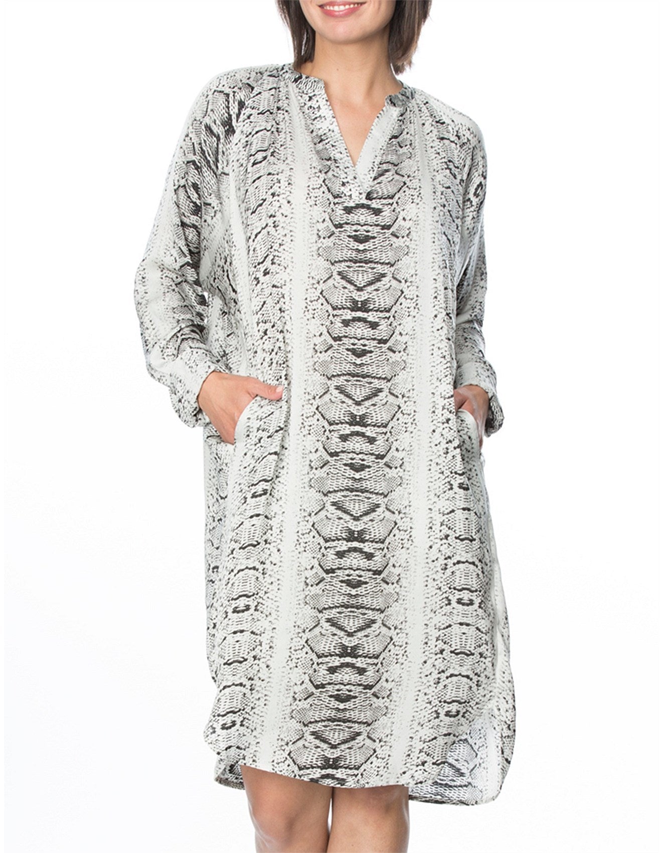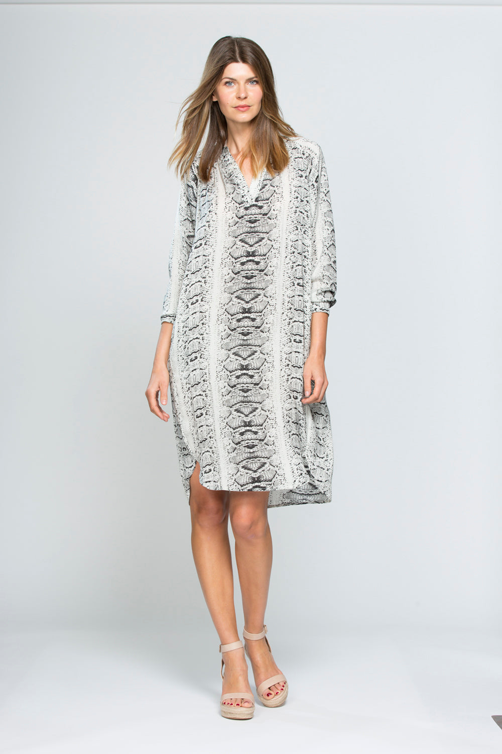 A great dress for transeasonal weather. Hammock and Vines snale print dress is a classic. Featuring: