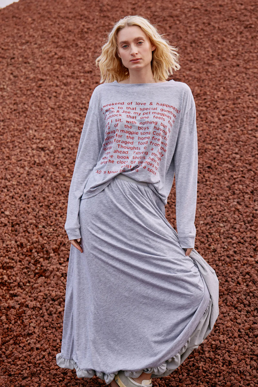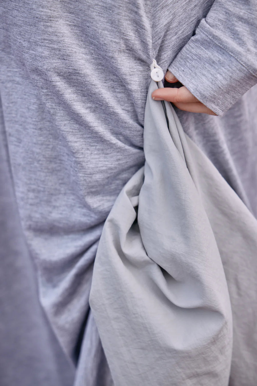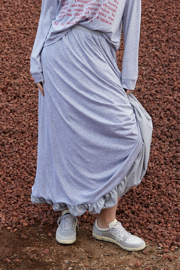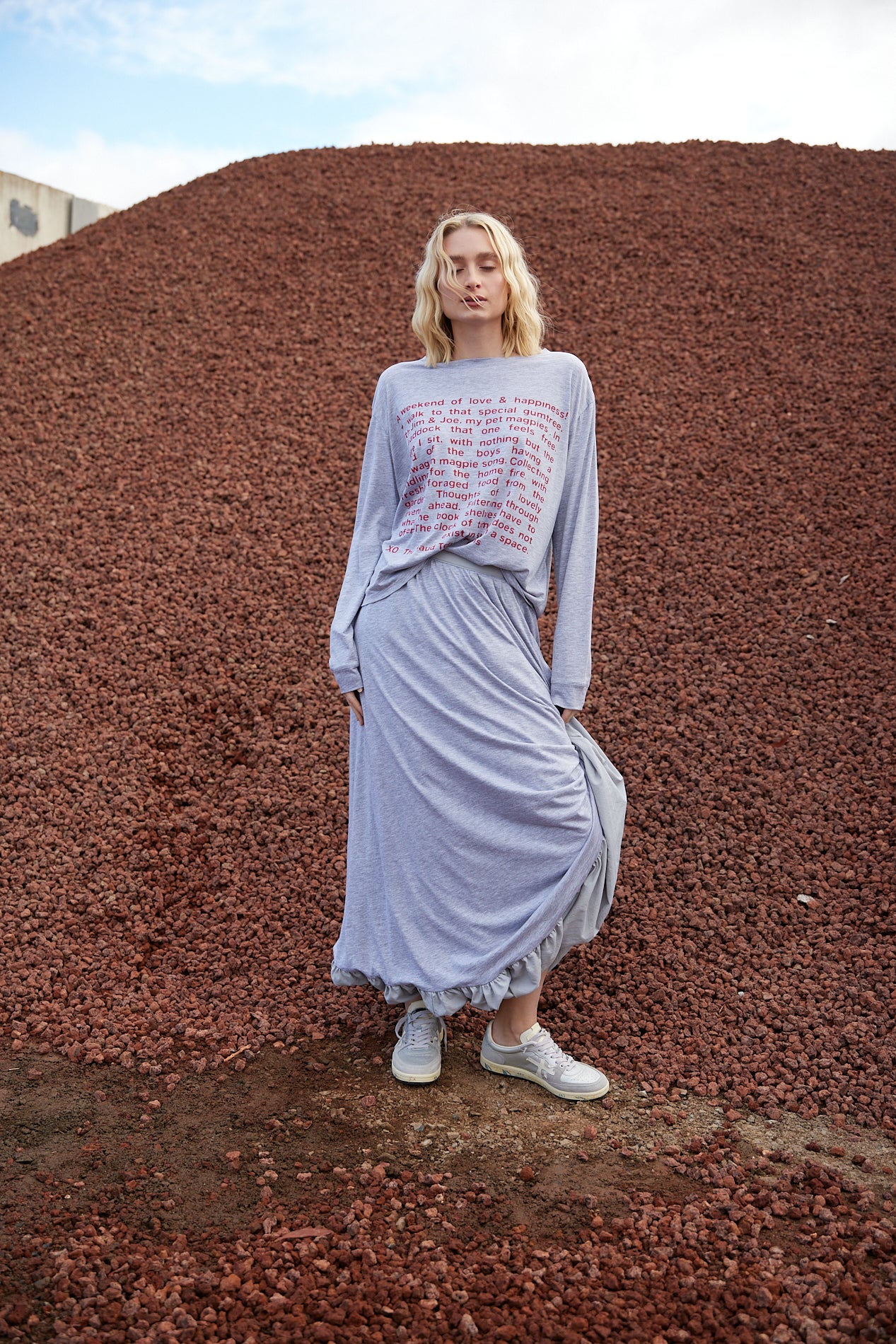 Experience ultimate comfort in the unique M.A.Dainty REVERSIBLE PUFF Skirt in Grey. Its elasticated waist and stretch fabric allow for maximum movement while draping beautifully over your body. This skirt is a winner as it is reversible and can be ballooned with layers by using the BUTTON to rise it up on 1 side or both. Pair with sneakers for a stylish on-the-go look.