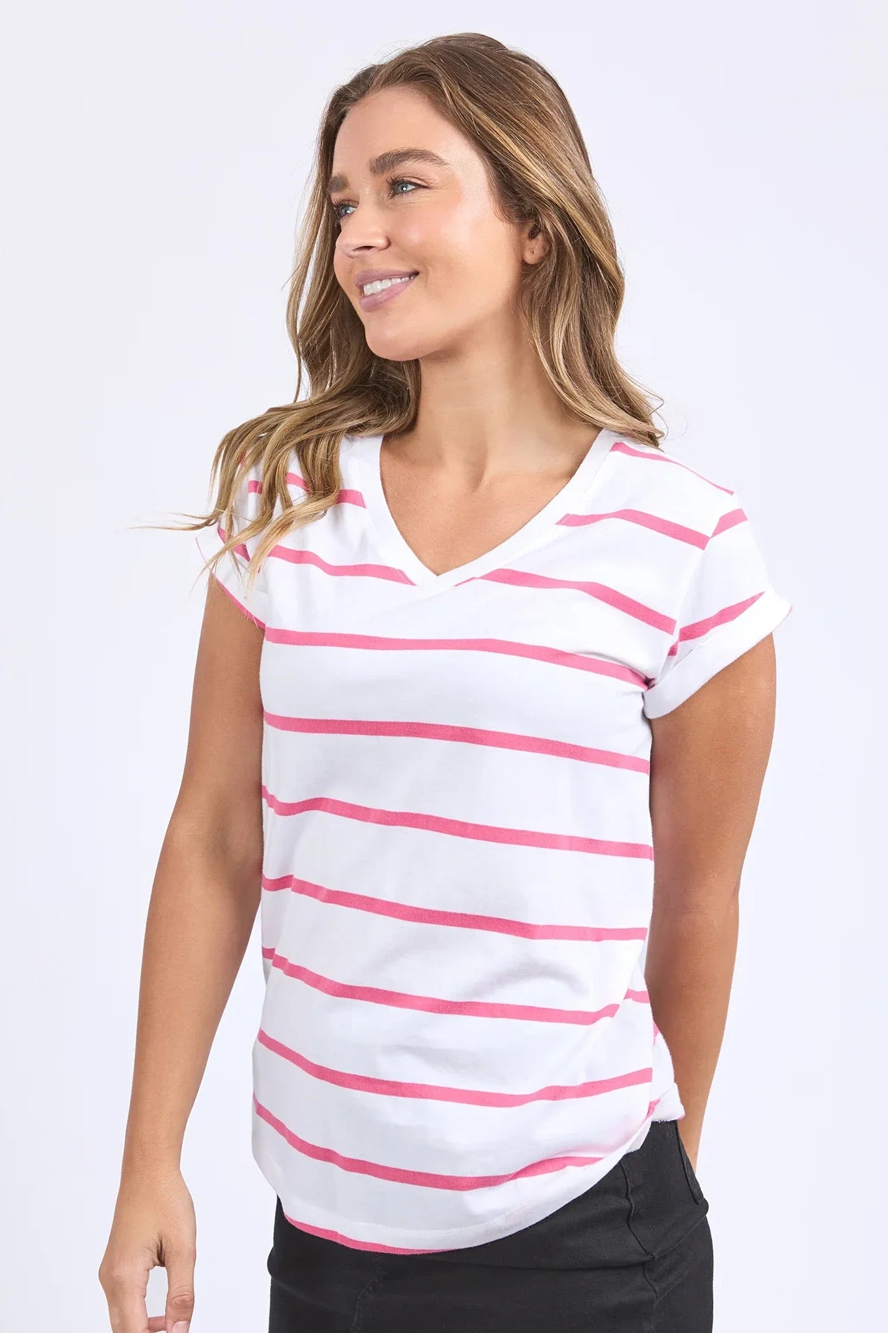 This will be your favourite tee in no time! Super soft and cool in 100% Pima cotton with rolled cuff sleeves and a curved hem. Get one in every colour!