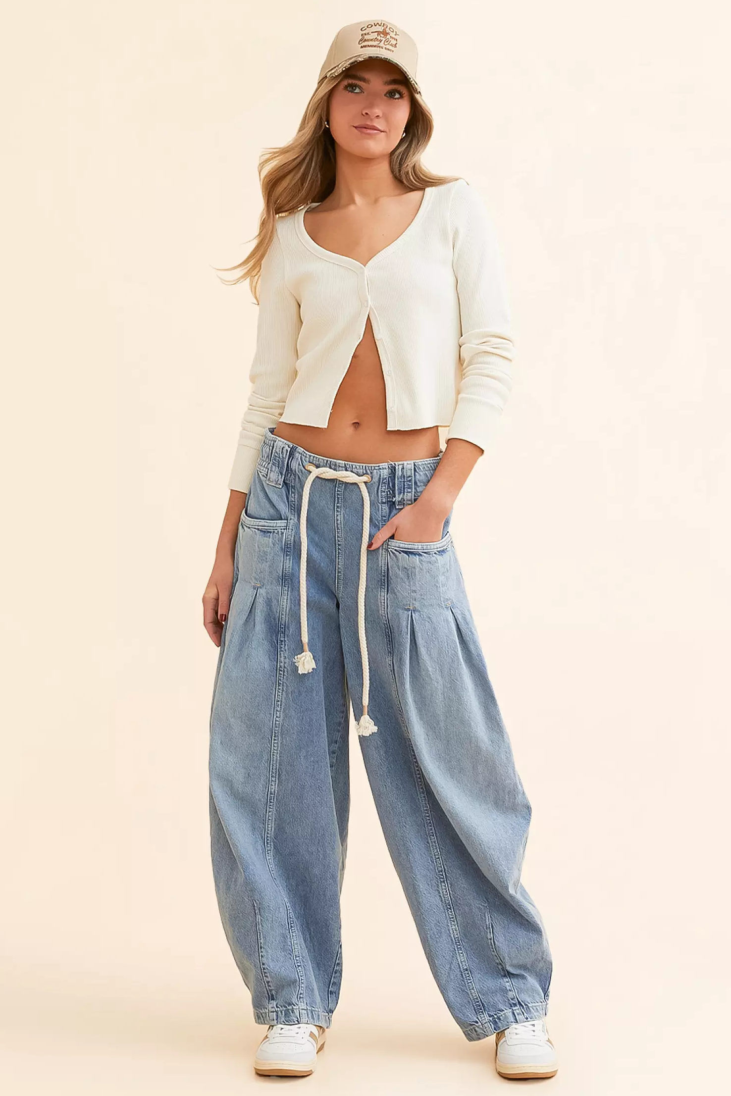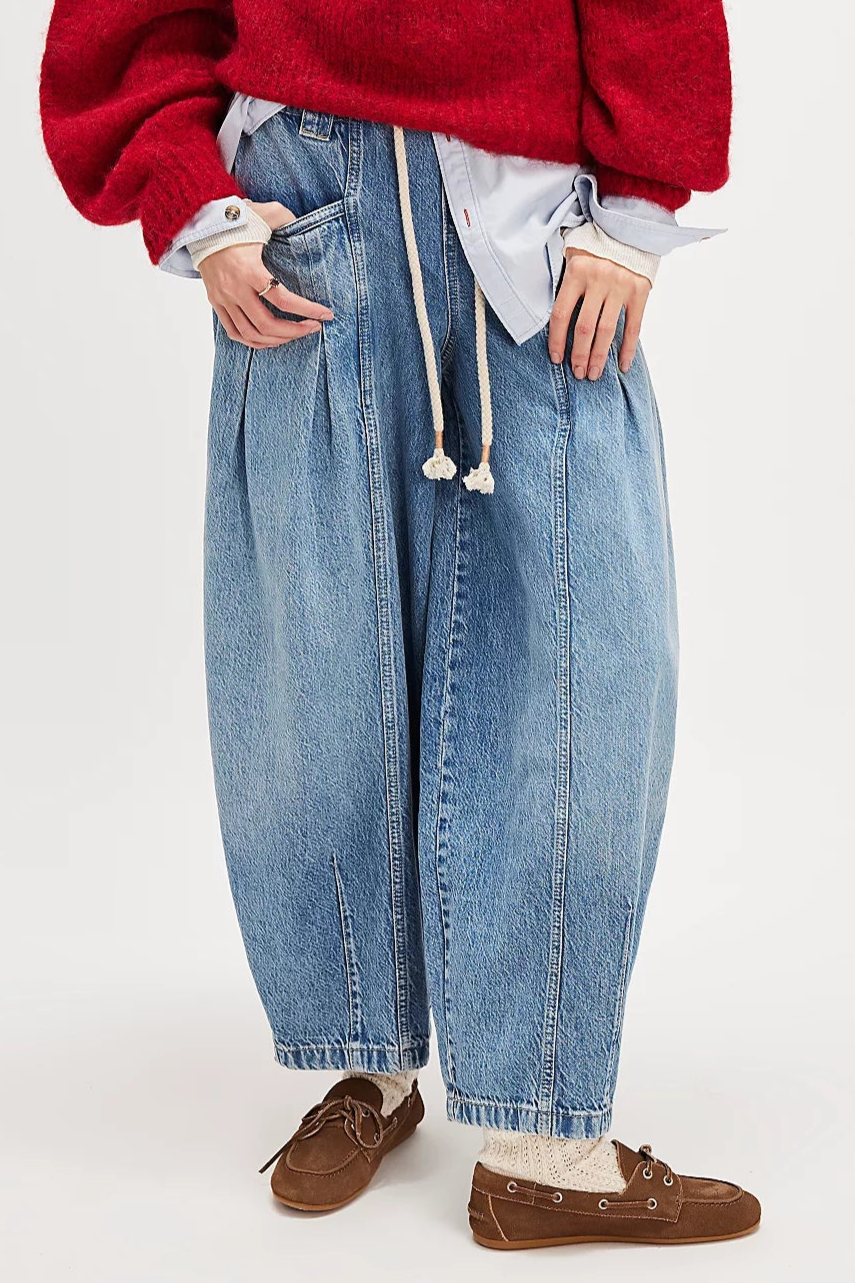 - Low-slung, wide barrel silhouette