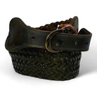 Made in white raw leather, dip dyed and tumbled to achieve a weathered effect – this leather will soften with wear. All marks are natural markings on the leather which is picked up by the dye.