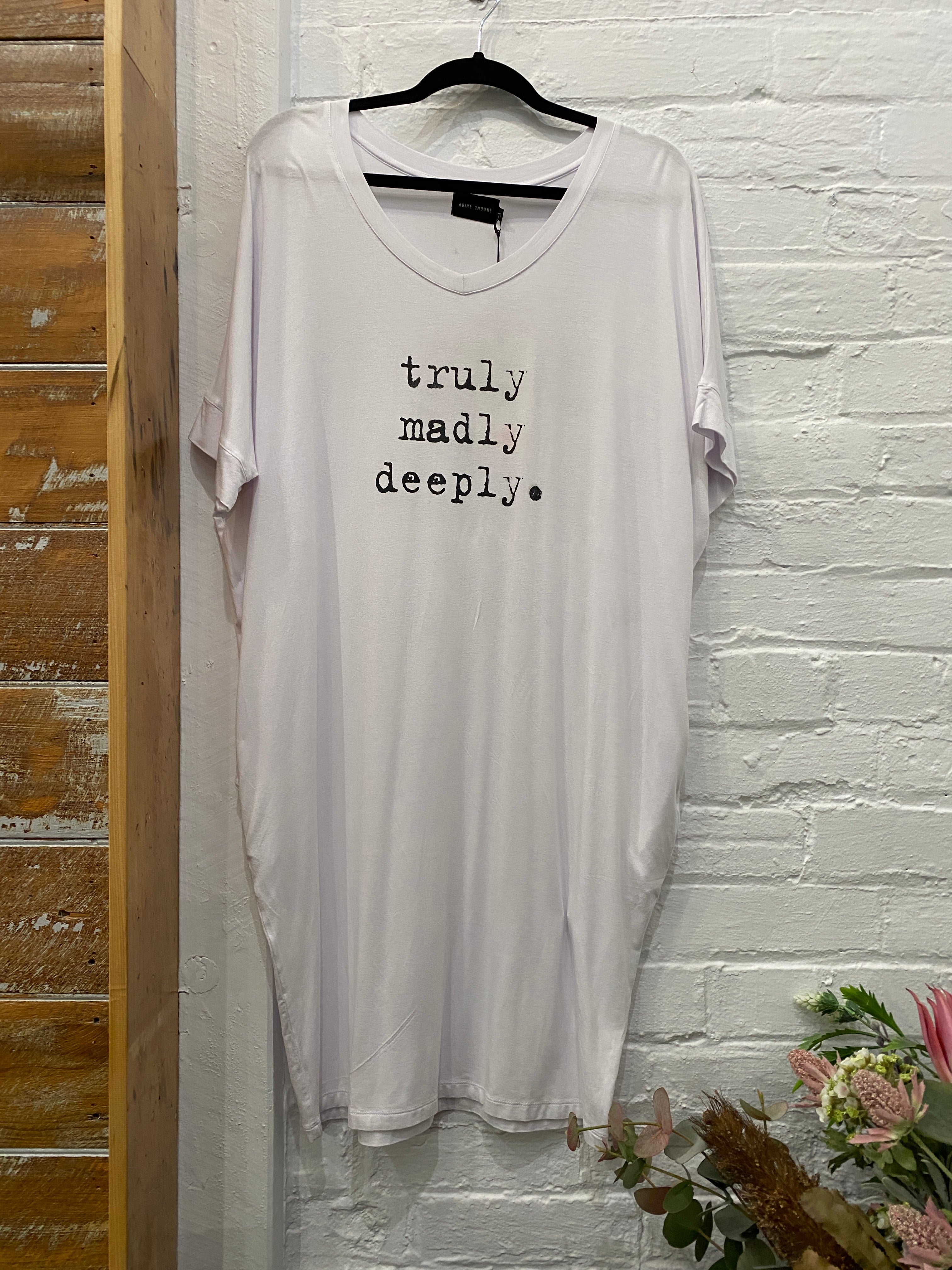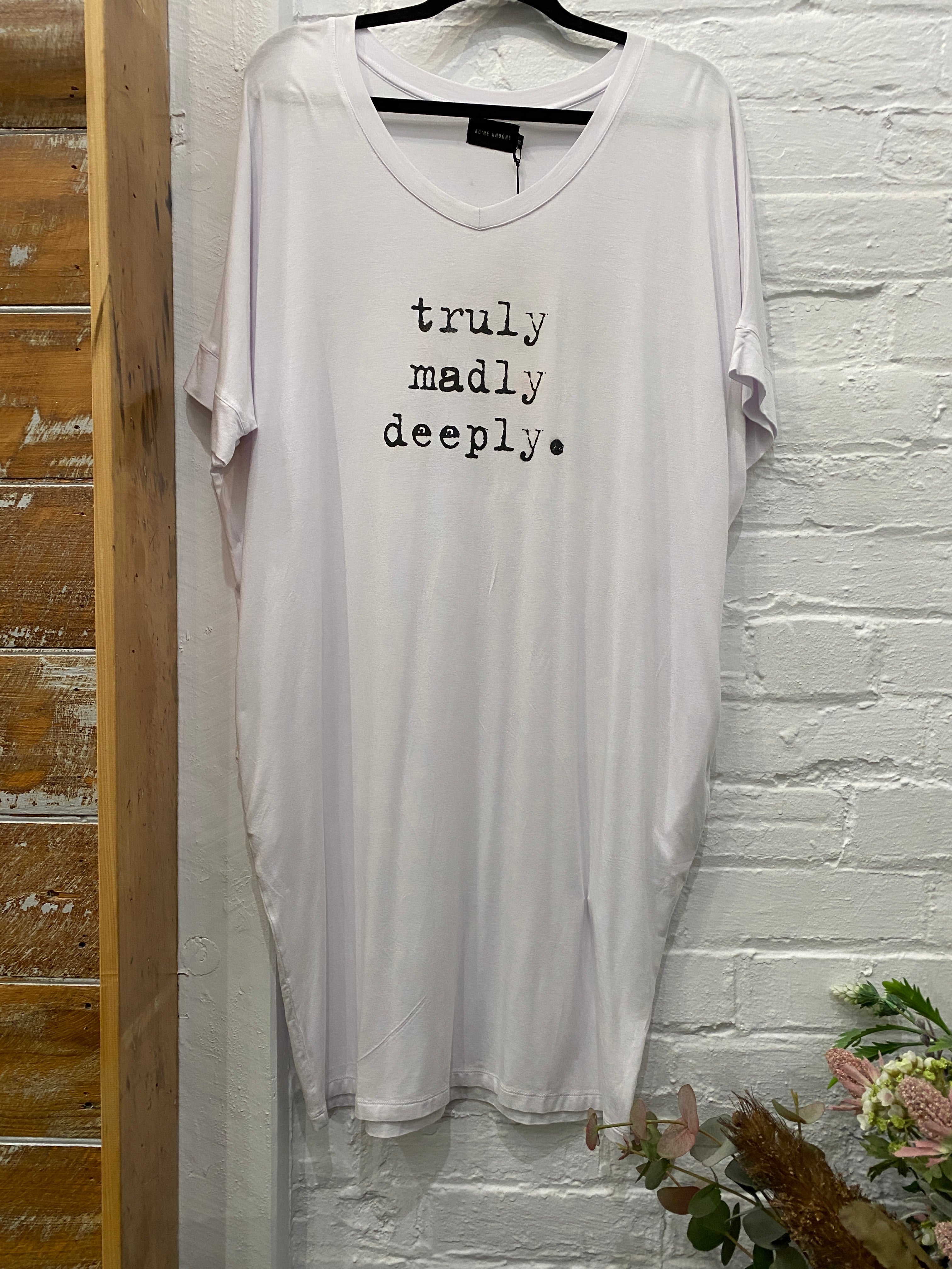 IMPORTED VISCOSE SPANDEX JERSEY MIDI DRESS WITH SIDE POCKETS AND SILK SCREEN PRINT