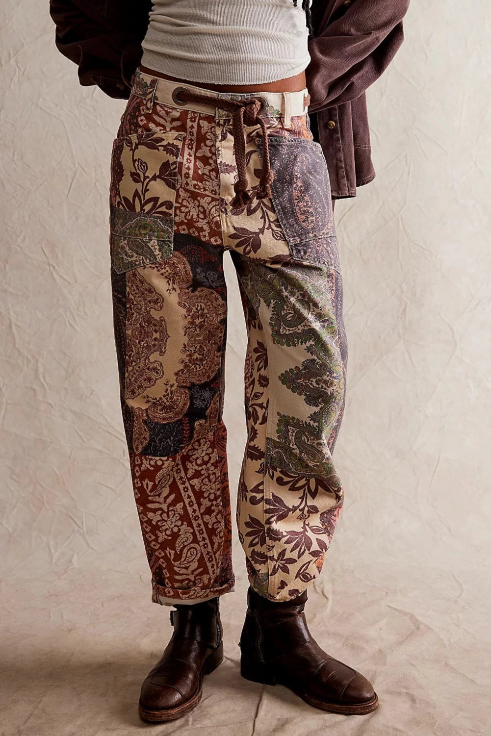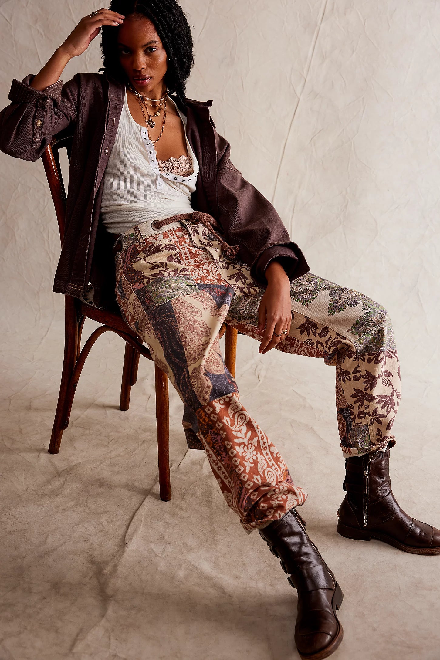 The perfect cool & contemporary addition to any denim drawer from our We The Free collection. Statement-making with an effortless touch of edge, these jeans are sure to stun with every wear. Mixed print fabrication, oversized patch pockets, drawstring waistband with button closure, pull-on style.