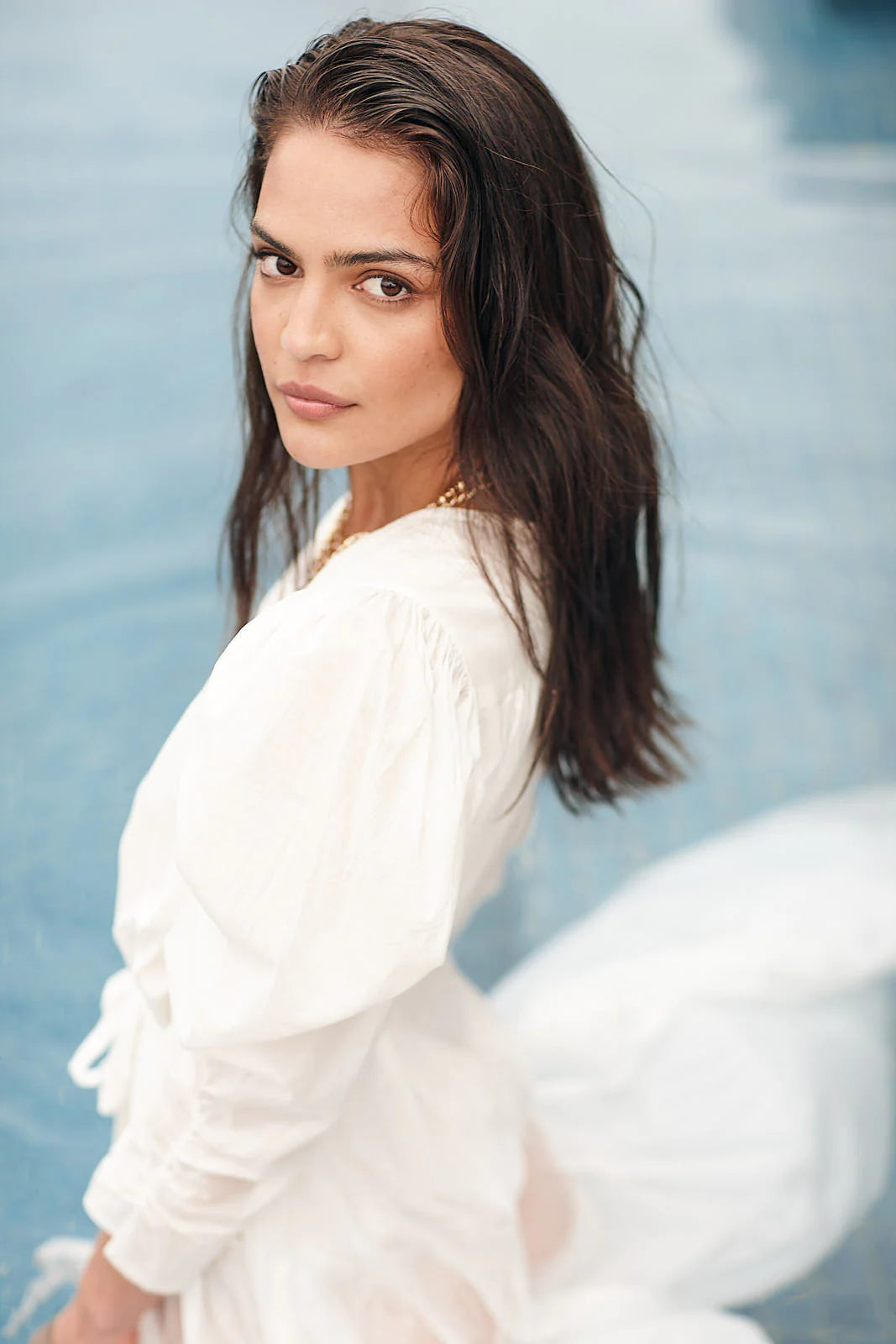 The Muscari dress is the most striking piece in the collection. Stunning gathered feature sleeve, gentle V front, and wrap waist system with a stunning tailored tulip skirt. This dress will float as your wear it and includes a lined skirt section to avoid transparency while giving a sheer, floaty look. Slightly longer at the back than the front for an extra glamorous look. Wear this piece dressed up or down. It is a timeless investment for your travel wardrobe.