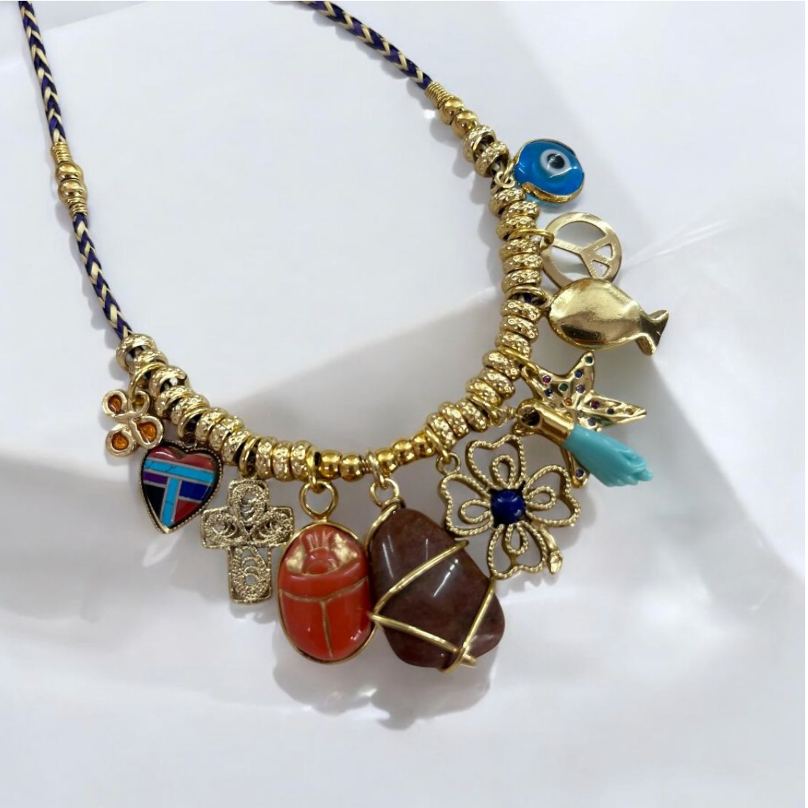 Warning: To preserve your jewel, avoid contact with perfume, water or humidity. Each creation is unique and the charms can be different.