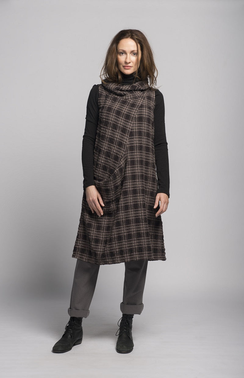 Picnic dress is a 3/4 length dress that features a soft drape of fabric. It finishes just past the knee.