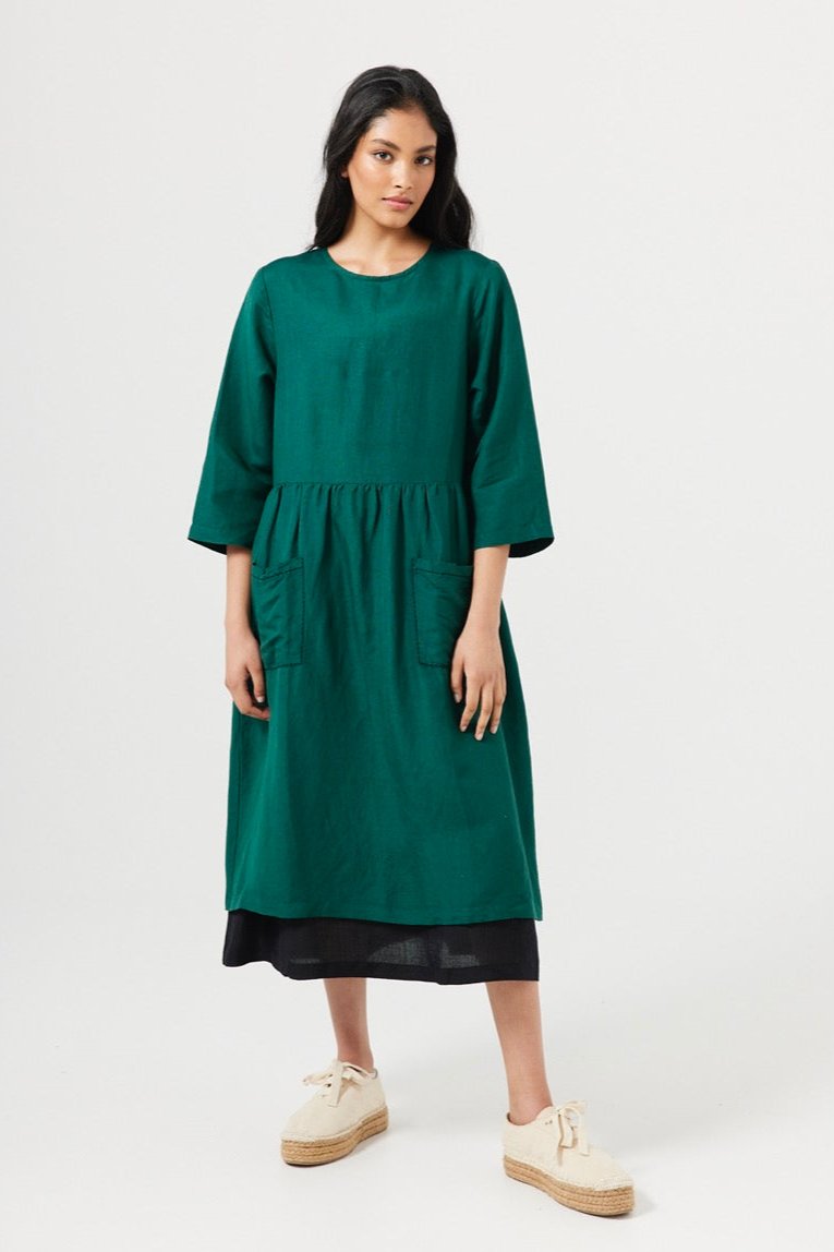 A perfect combination of effortless style and thoughtful detail, the Poppy Dress is a one-stop wonder! Featuring mid-length sleeves, a gathered waist and roomy fit, you'll dress with ease and comfortability. This gorgeous style features a contrast hem panel to create that layered look, without the extra bulk.