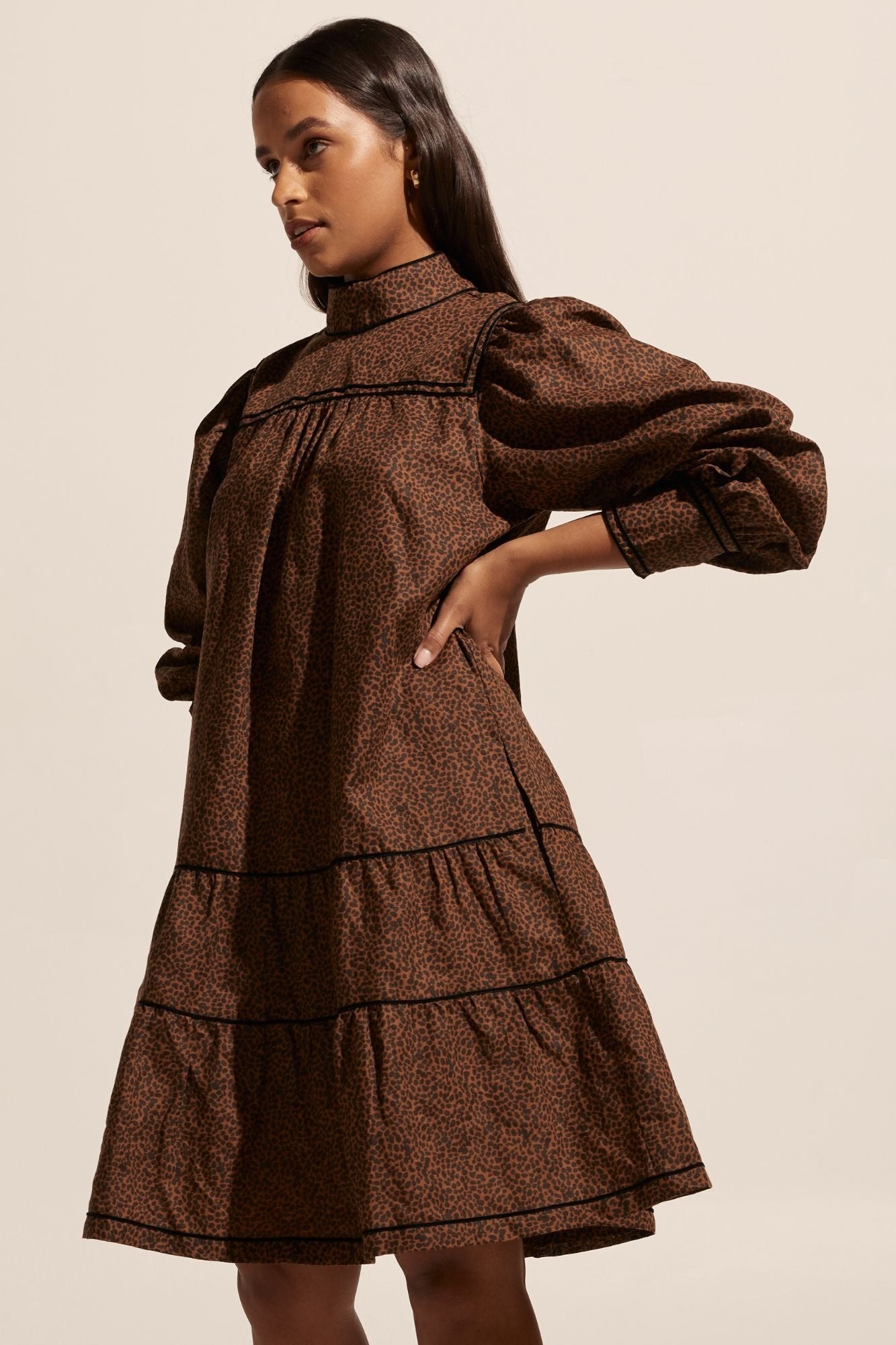 Prowess Dress in Toast Leopard