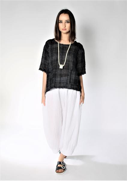 Morgan Marks - Raw Edge Linen Top - Black/White Check