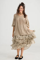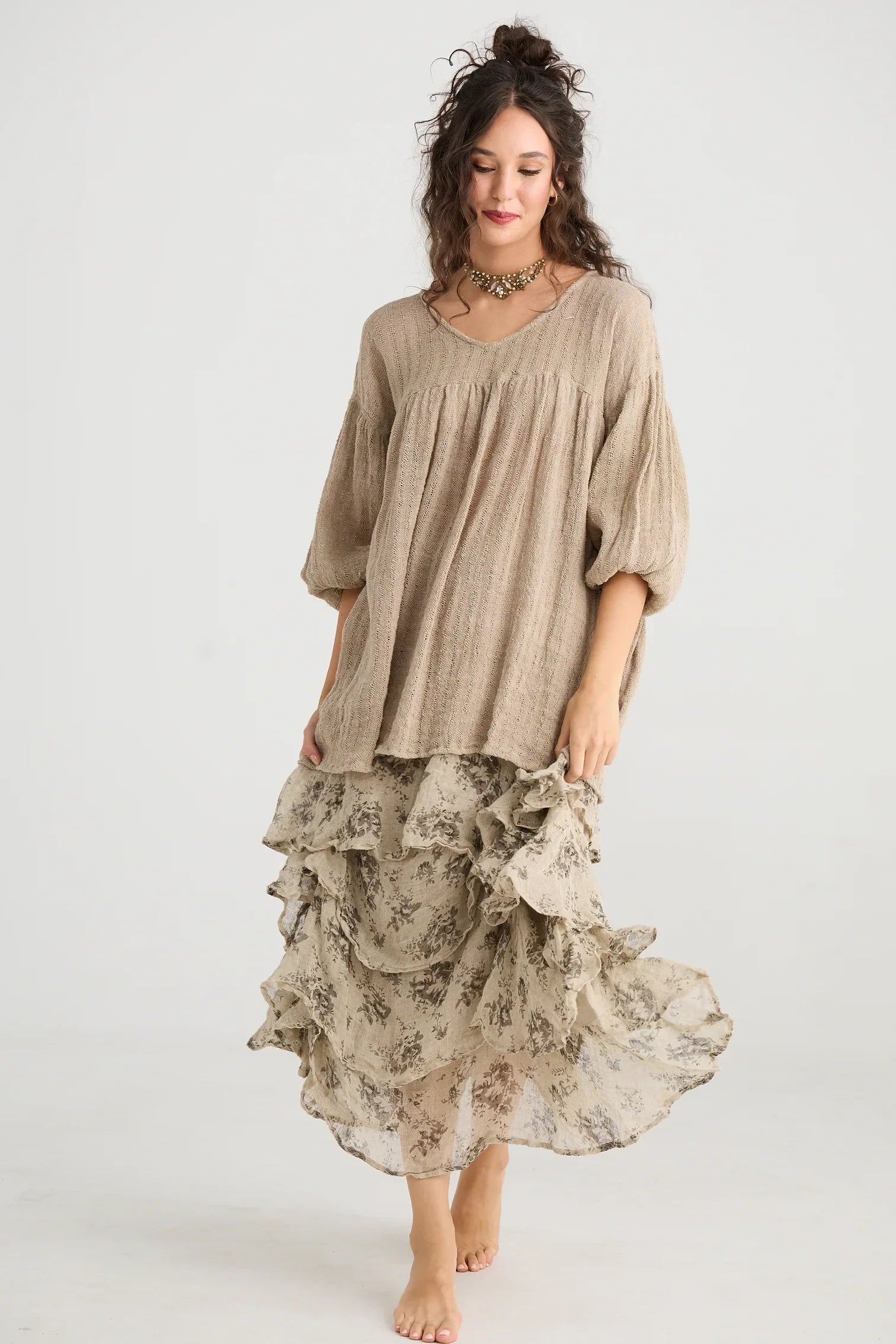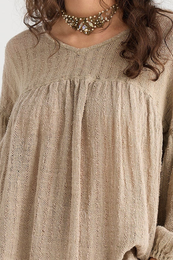 With its warm, earthy Desert Sand hue and raw linen texture, this piece is evocative of sun-drenched days and relaxed afternoons. It is the perfect companion for our Enchantress Slip Dress, offering subtle, breathable arm coverage in a way that feels lightweight and chic.