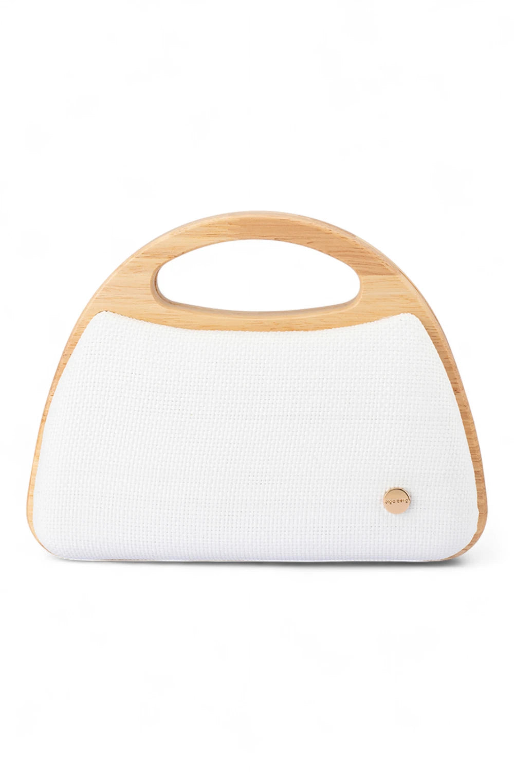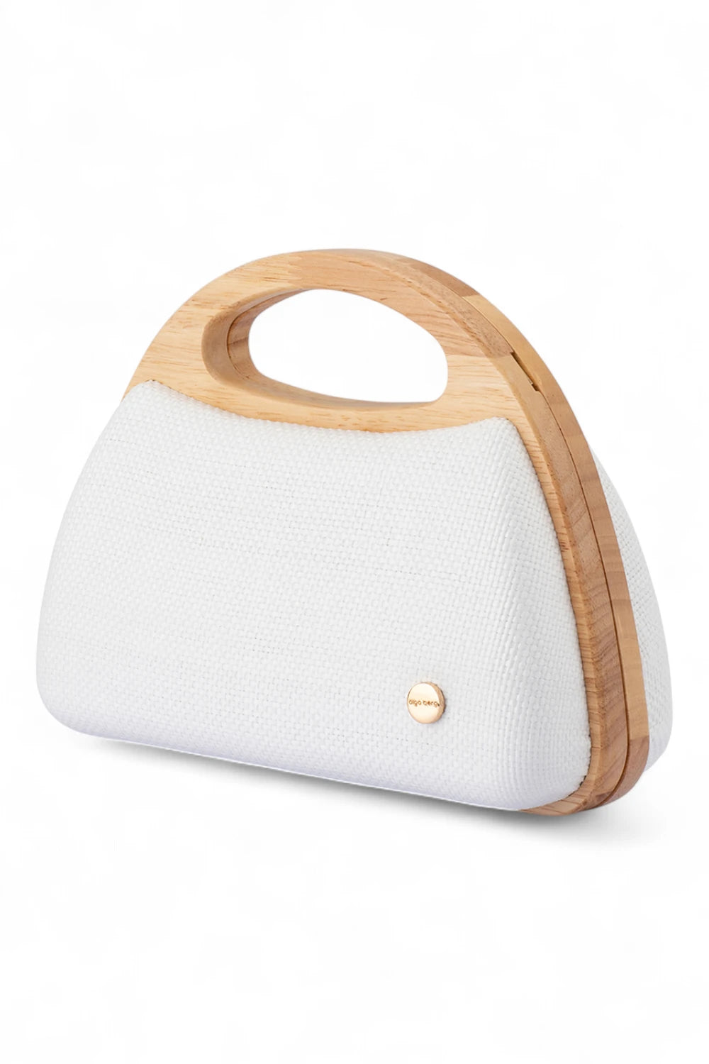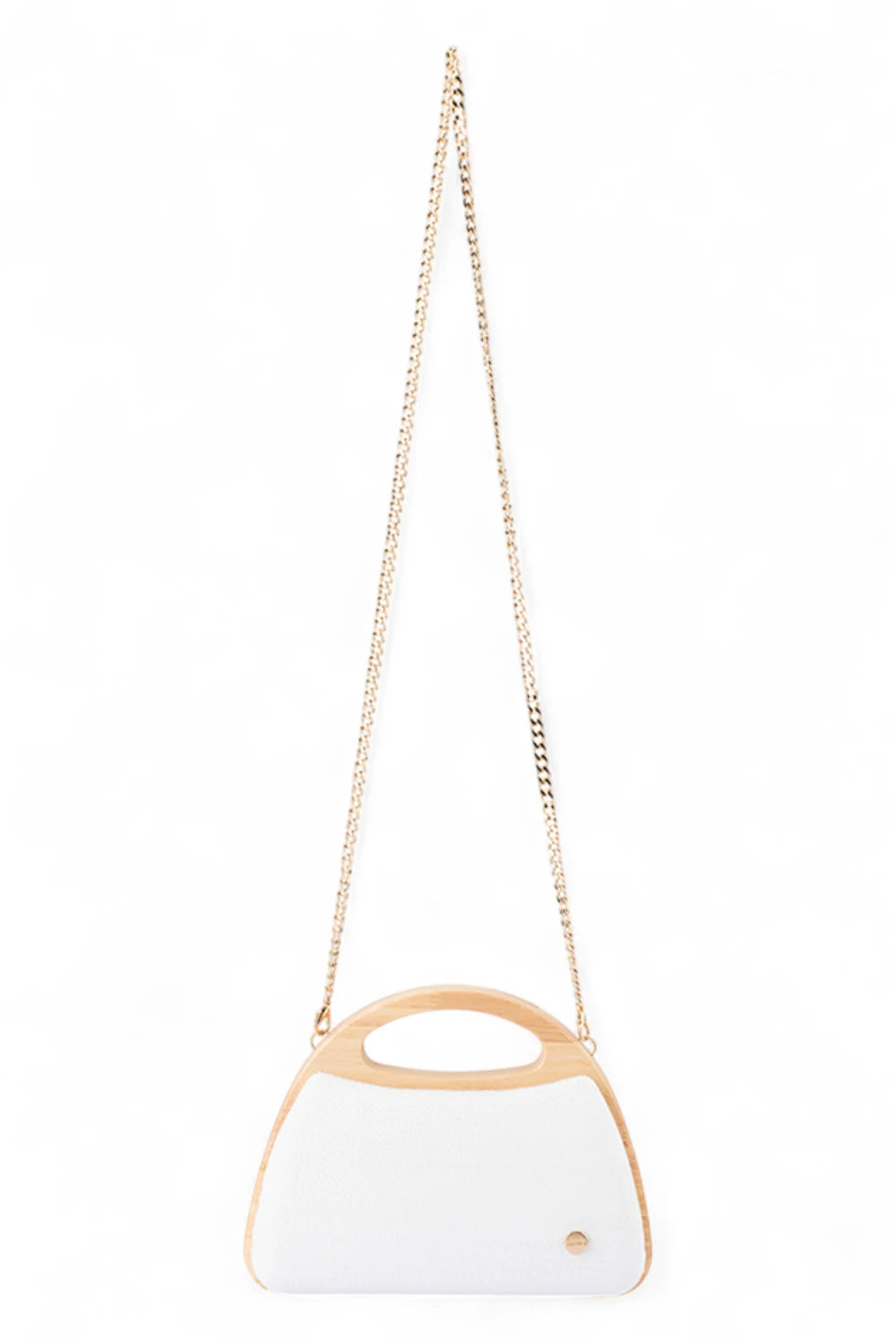The SARAH Wooden Frame Grab Bag features a stunning woven exterior complemented by a wooden frame. A great option for round the clock events. This bag includes a detachable shoulder chain for when you need to be hands free.