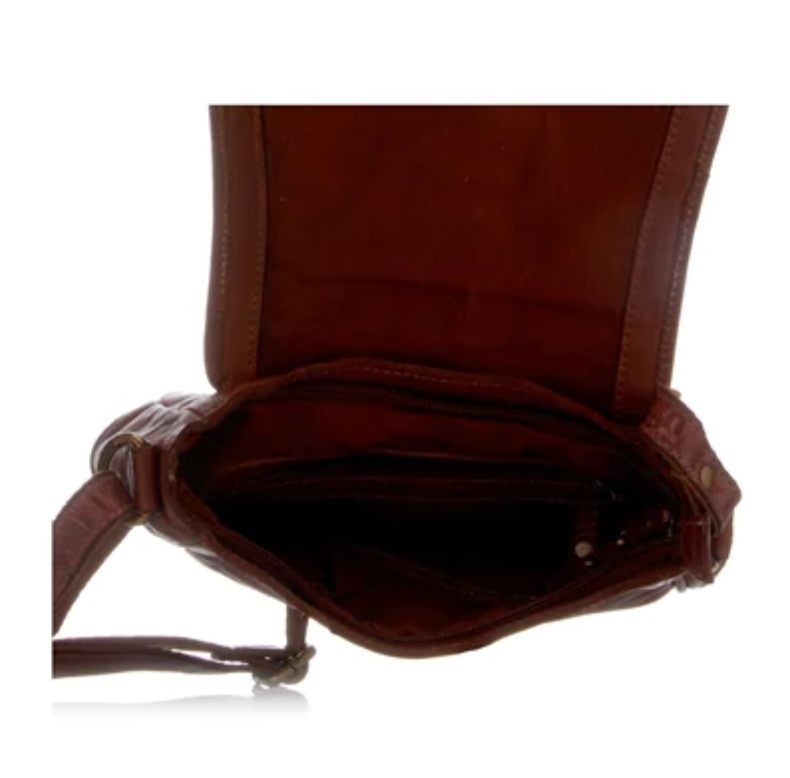 Made in white raw leather, dip dyed and tumbled to achieve a weathered effect – this leather will soften with wear. All marks are natural markings on the leather which is picked up by the dye.