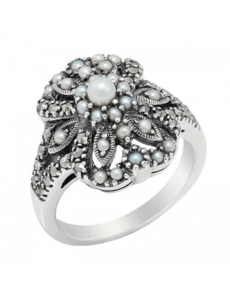 Seed Pearl Marcasite Ring