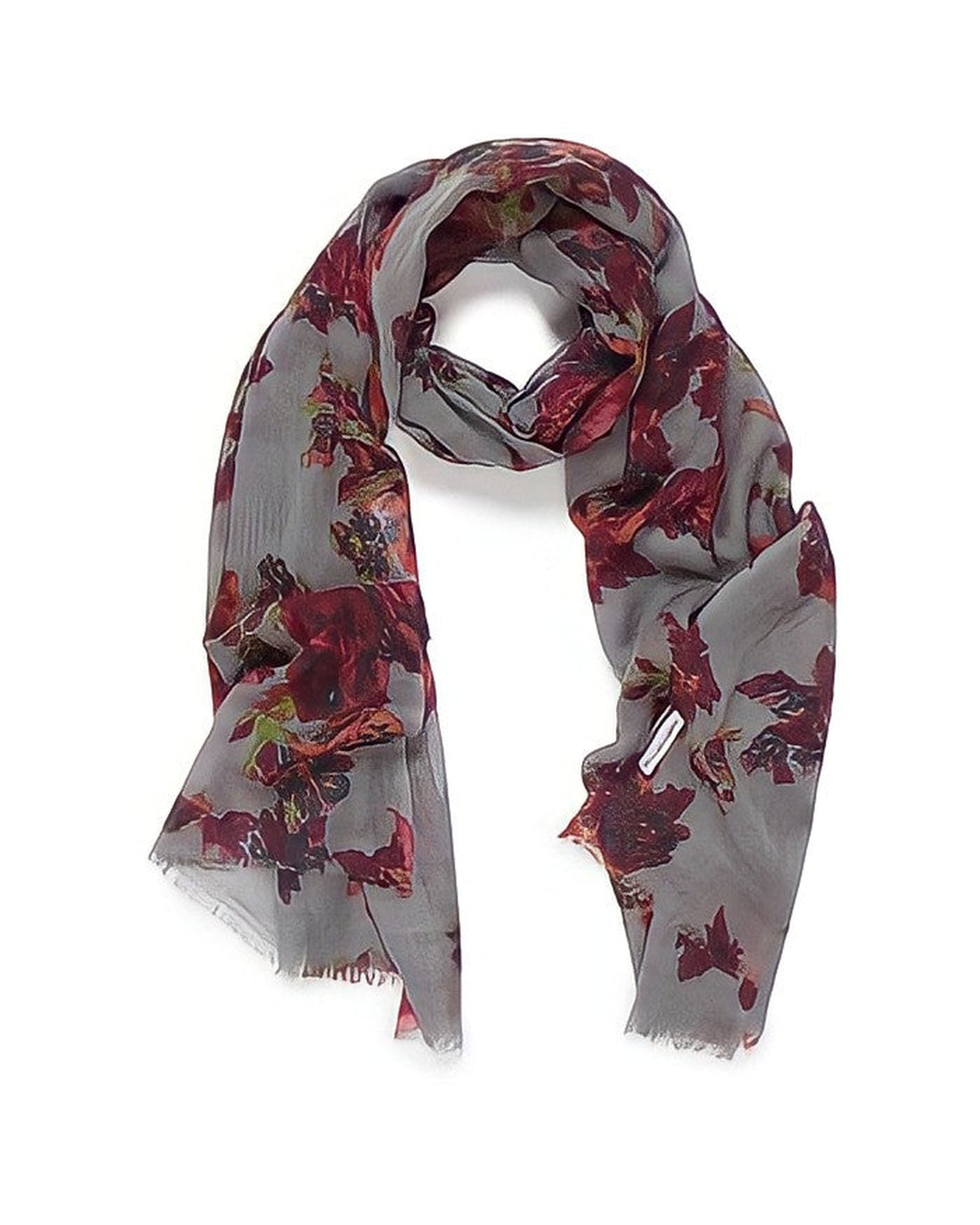 Printed with an autumn print this scarf is the perfect accessory for your winter wardrobe featuring eyelash fringe.