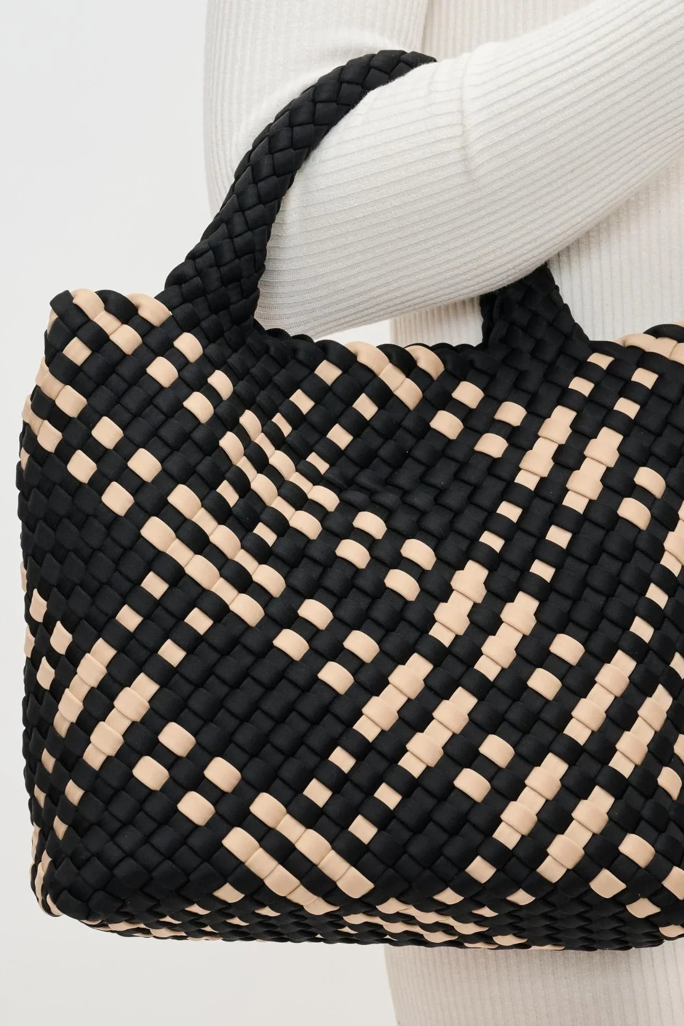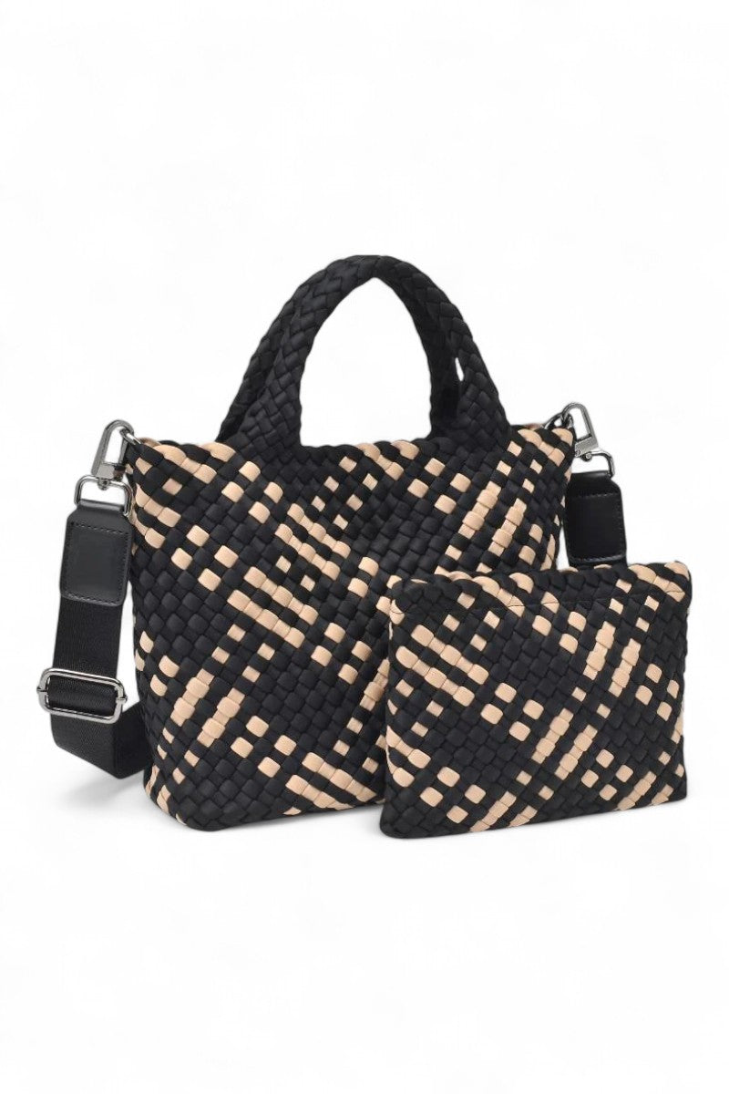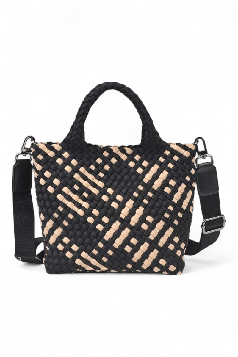Set your sights high with the Sky's The Limit - Small Crossbody Tote, a testament to chic functionality. Crafted from intricately woven neoprene, this crossbody tote exudes sophistication with its durable, tactile charm. Its versatile design includes a detachable crossbody strap and a matching pouch, ensuring your essentials are always within reach. Ideal for the fashion-forward dreamer, this tote promises to elevate your style quotient while offering an ethereal, lightweight feel for your daily adventures.