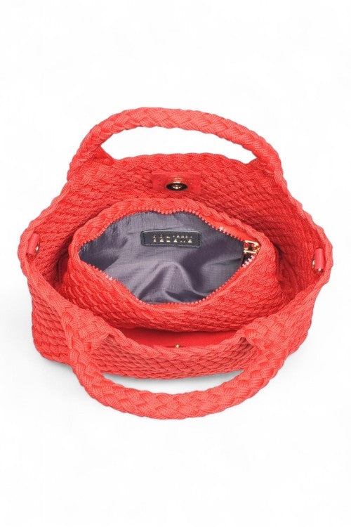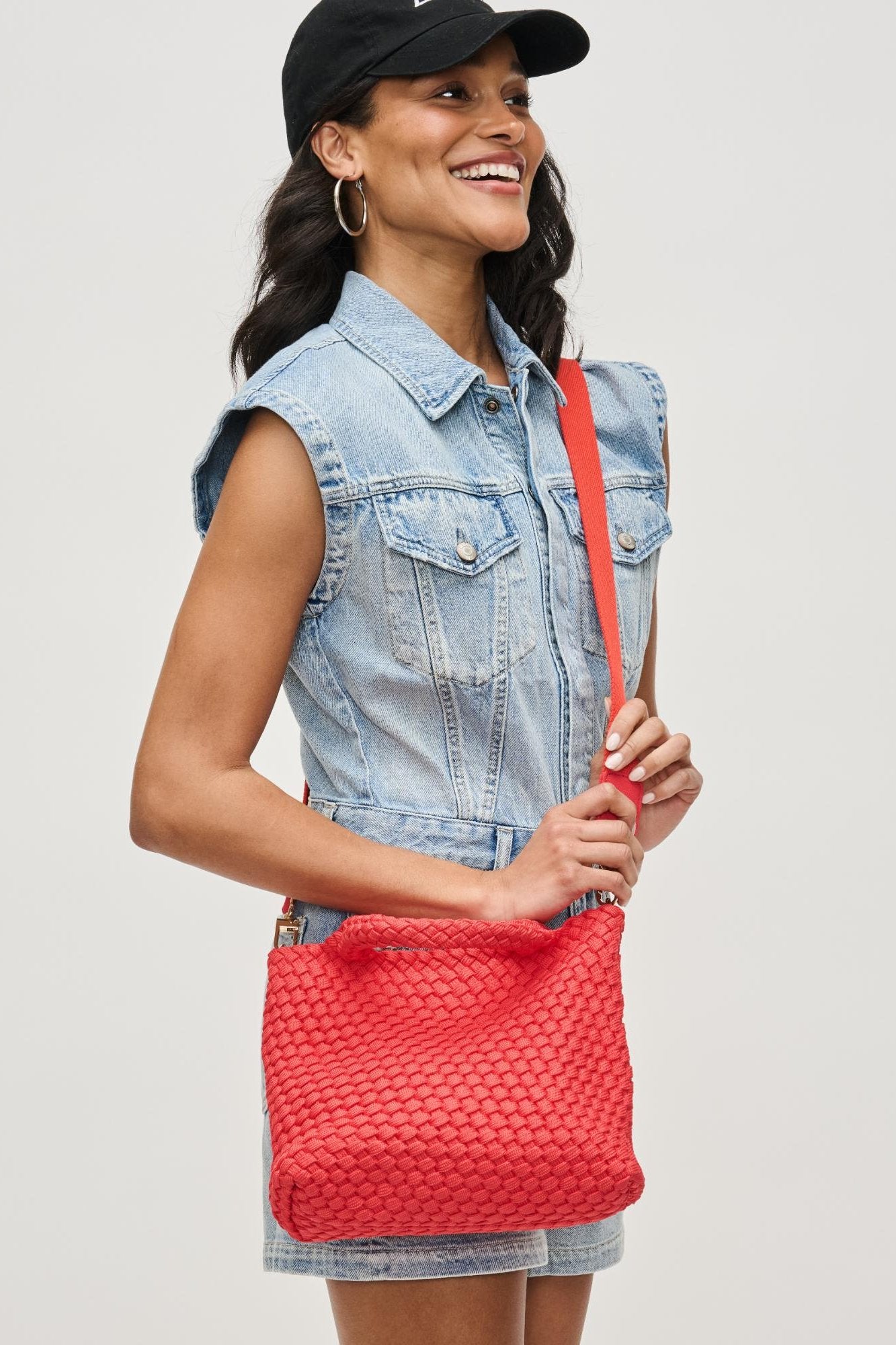 Elevate your everyday with this versatile small crossbody bag. Its compact design is perfect for hands-free convenience while maintaining a chic, polished look. Crafted from sustainable recycled materials, this bag lets you make a style statement while supporting eco-conscious practices. Featuring a lightweight, durable woven texture, this crossbody offers both functionality and flair. A detachable strap ensures versatile wear as a tote or crossbody, adapting effortlessly to your day. Ideal for running errands or traveling light, it's your go-to for sustainable, stylish accessorizing.