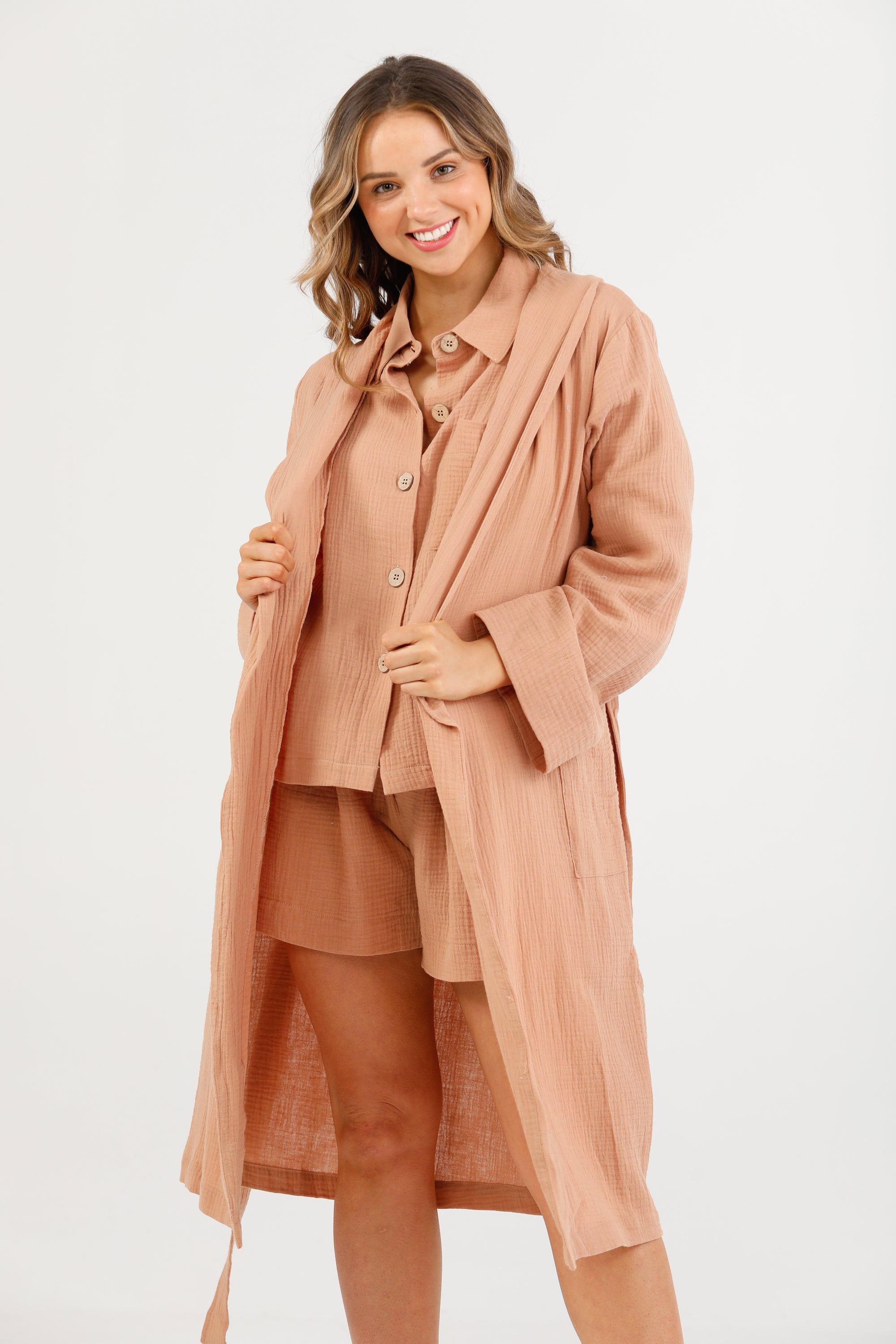 Lounge decadently at home, or pack it for your exotic getaway, the Homelove Robe is perfect for slipping on between outfits - morning, noon and night! A relaxation essential, throw it over the Stay At Home Set for the ultimate lounging combo.