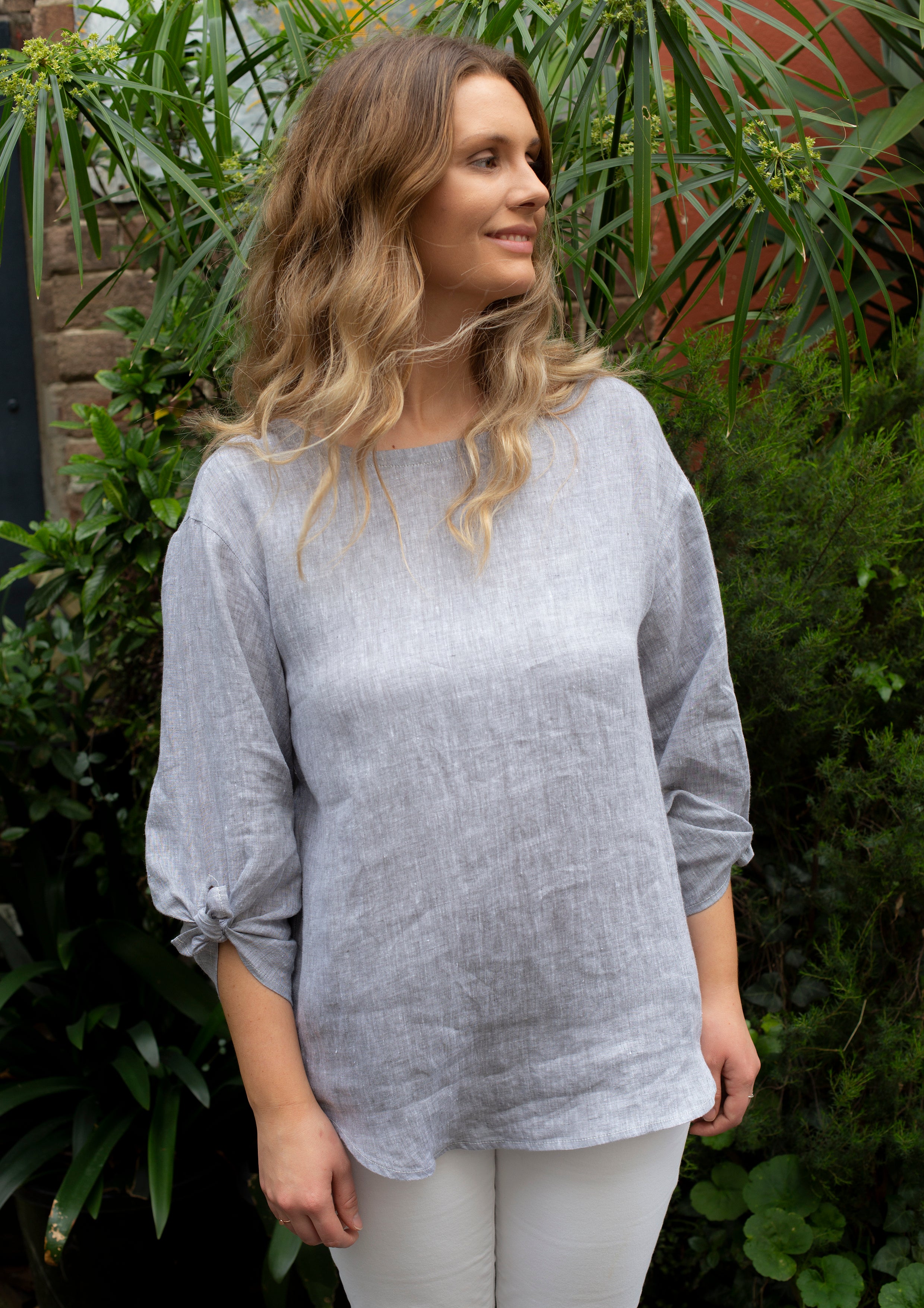 The Split Top in Black by Olive Et Julie is cut from light-medium weight linen. In four versatile colour ways this top is fantastic back with black linen pants for an all black outfit. There is a split in the side of the arm sleeve allowing for an optional tie feature.