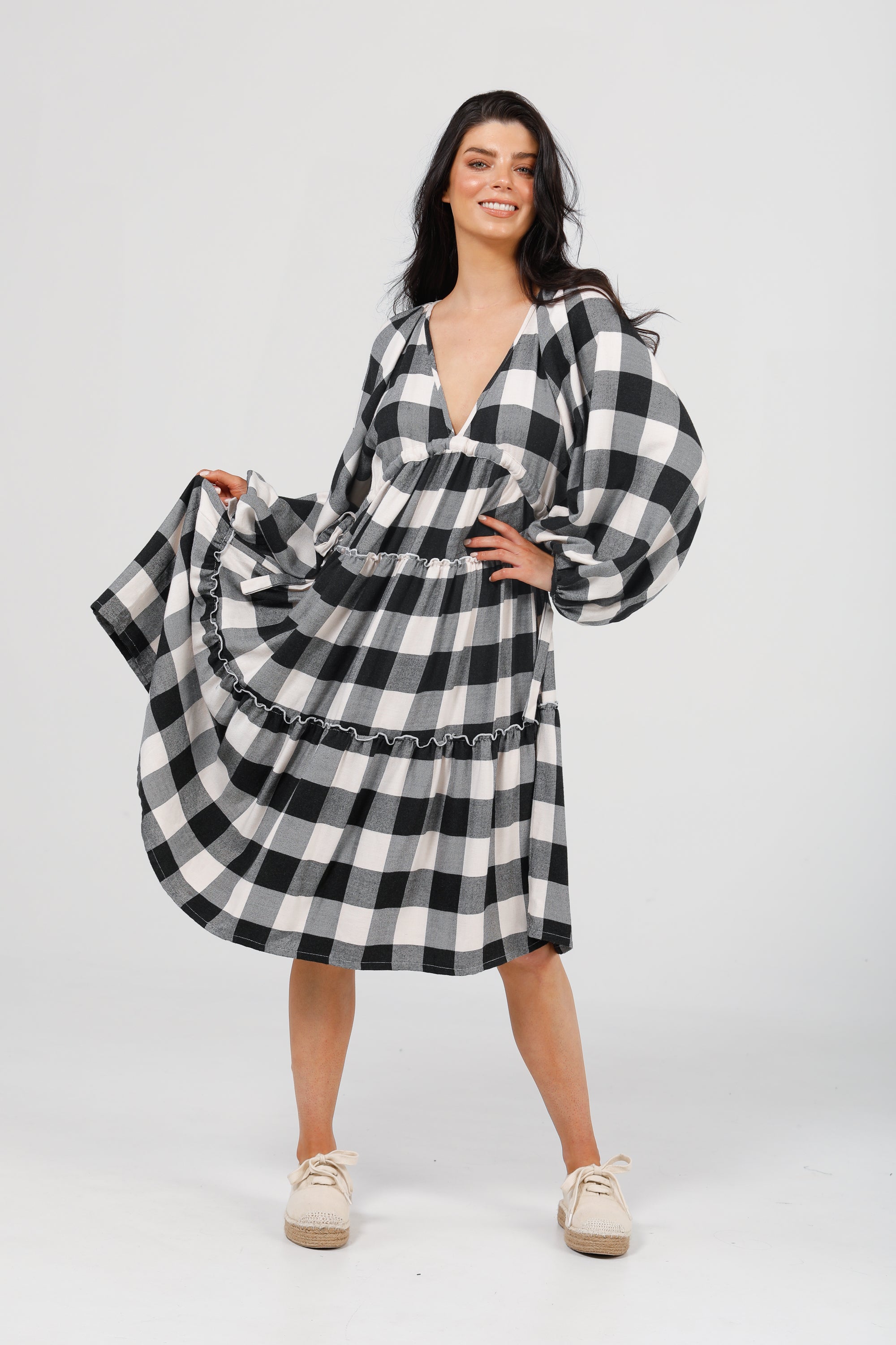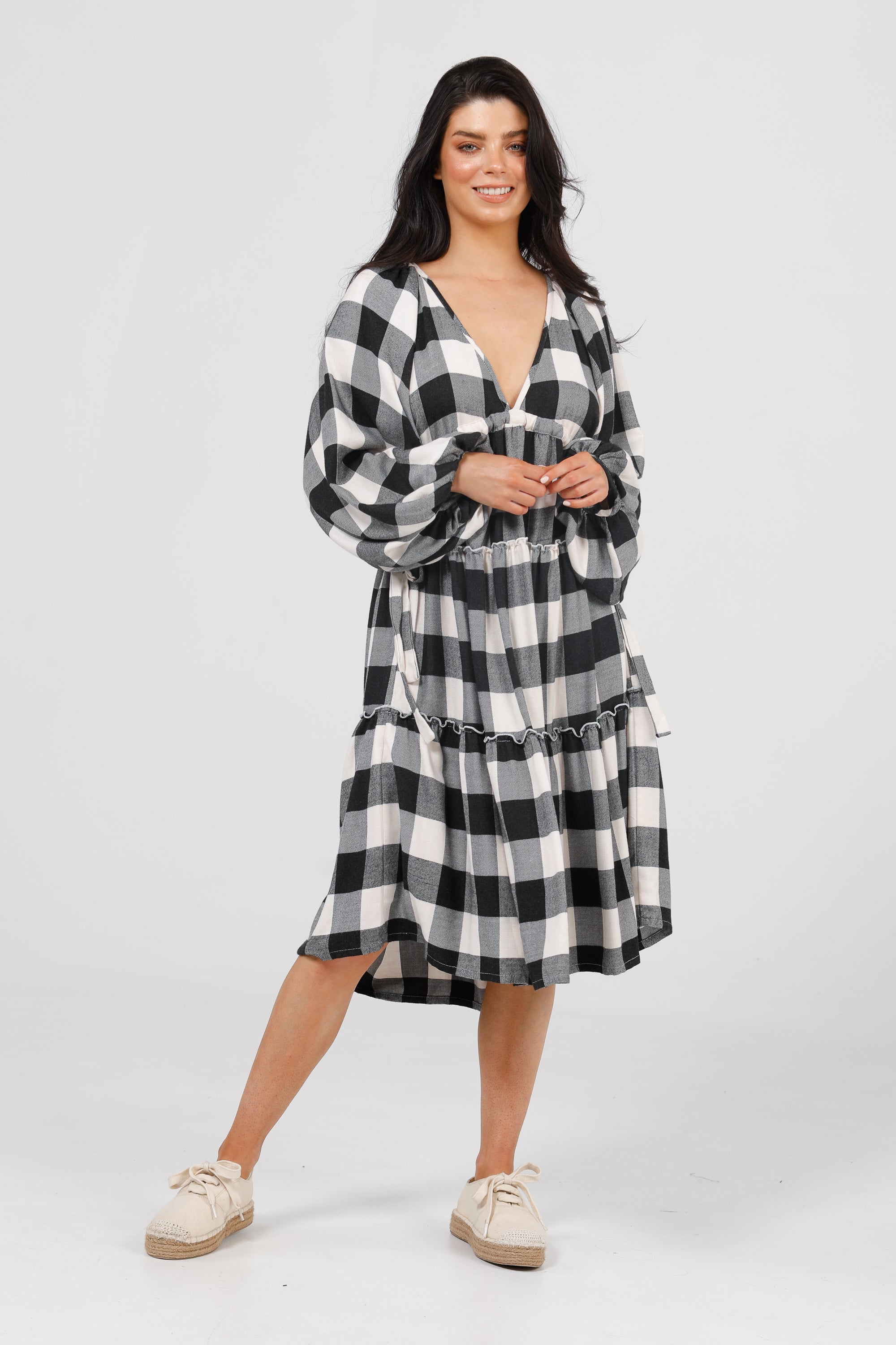 A new shape for Shanty, the Wing and a Prayer Dress channels contemporary boho. Tap into this season's love for voluminous sleeves and breezy fit with this gorgeously detailed tiered dress.