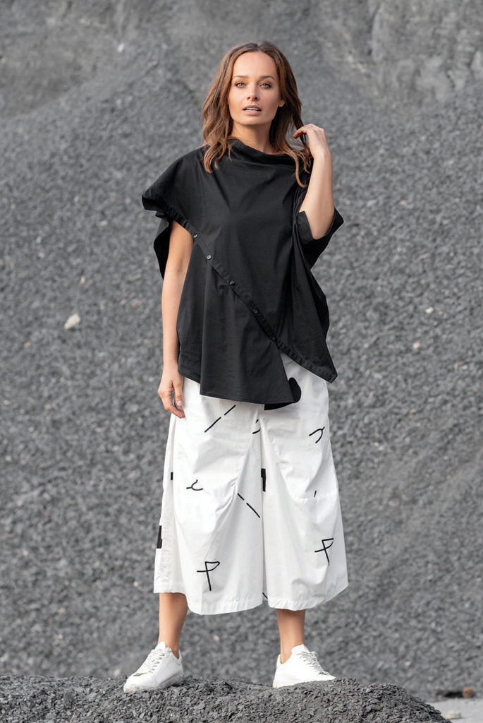 These pants are part of Kokomarina's Spring Summer Collection of 2019/2020. Crafted from a crisp cotton the Zunami Pants look fantastic back with a black top and bold jewellery.