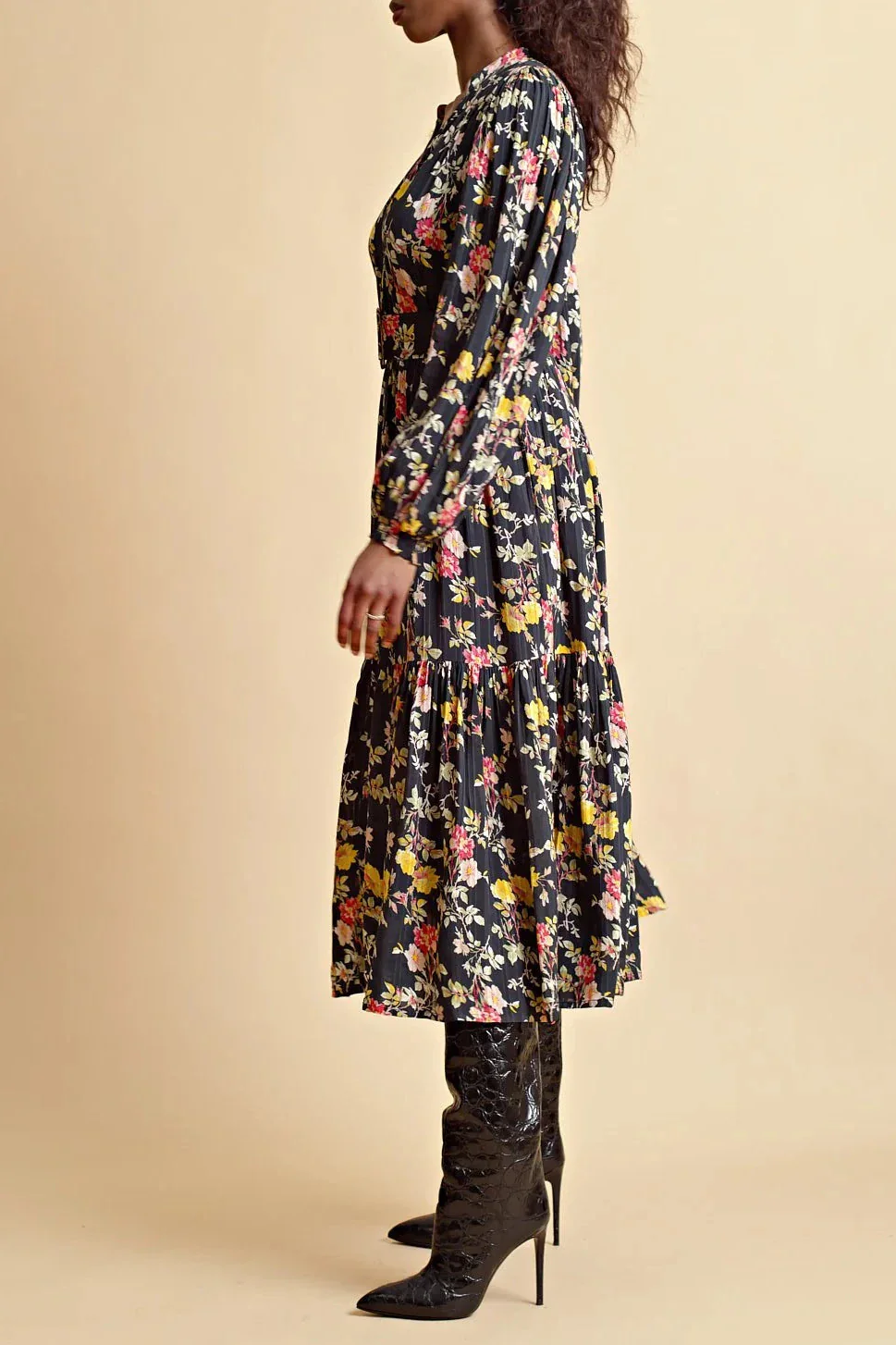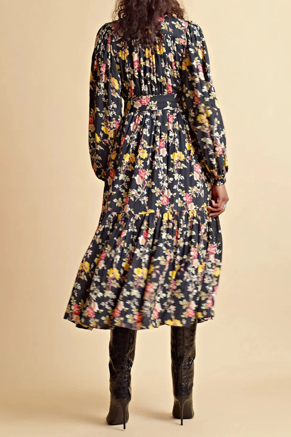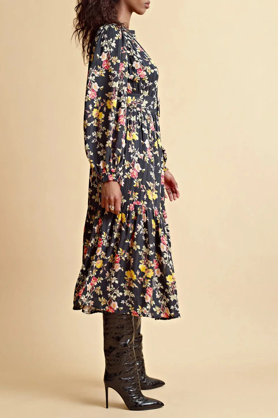 The Boho Midi Dress is a stylish dress with a gathered waist with good stretch. It has a lovely floral print that makes it a dress you can take with you through all seasons.
