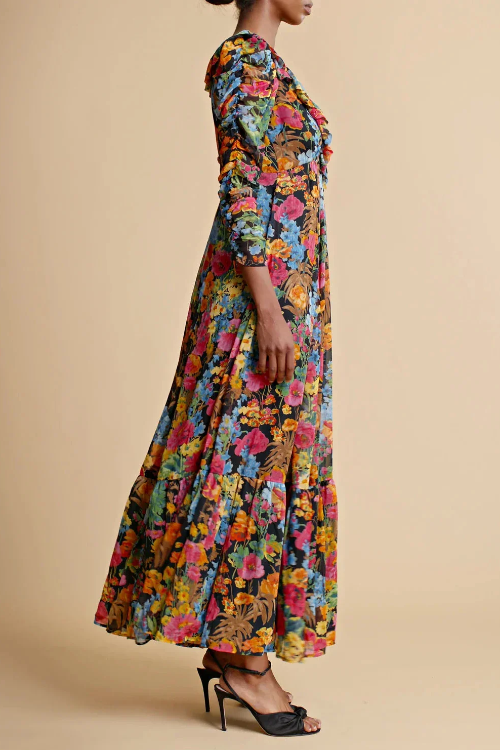 Georgette Ruffle Dress | Night Blossom
