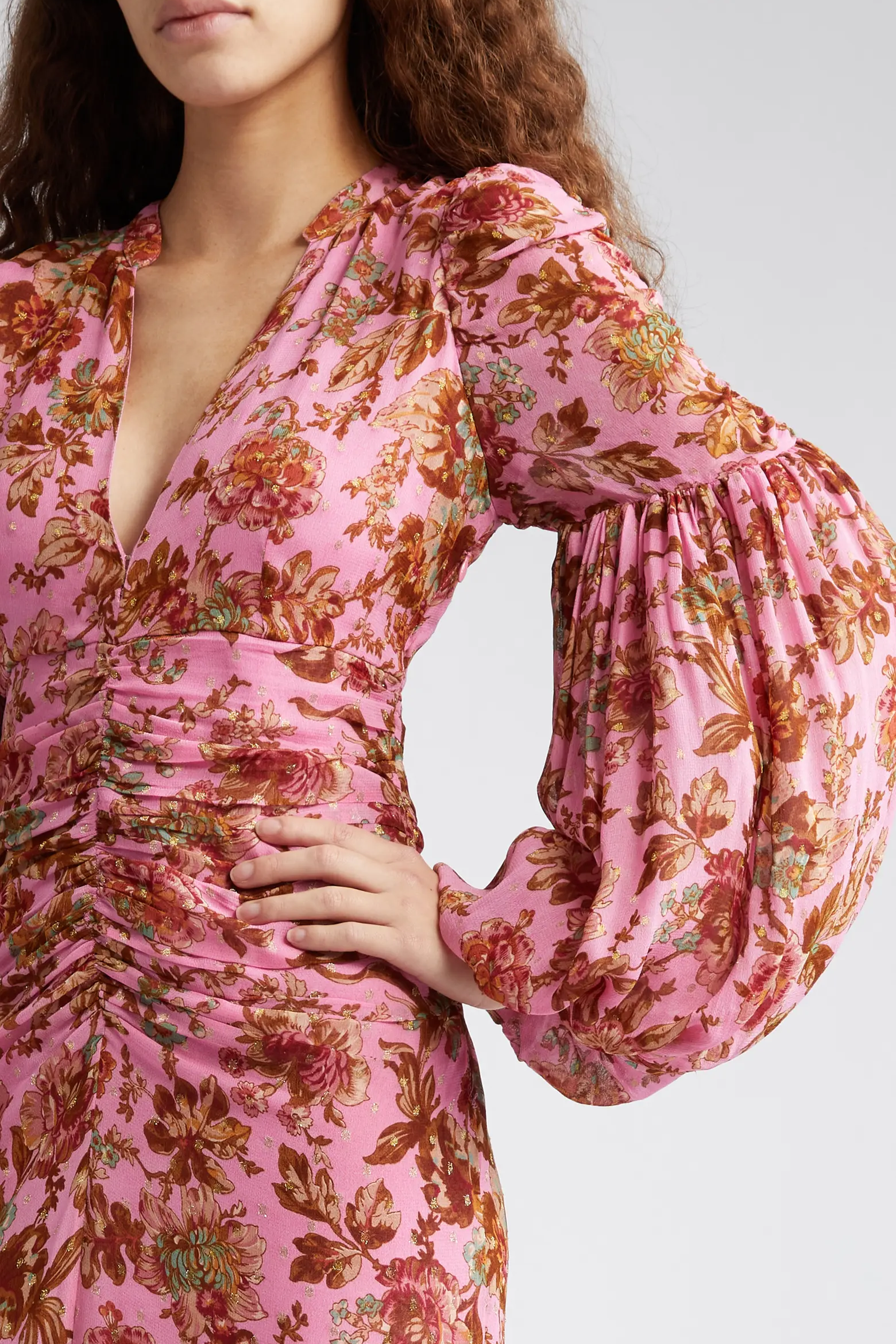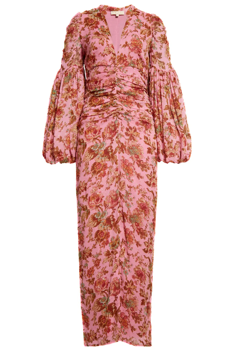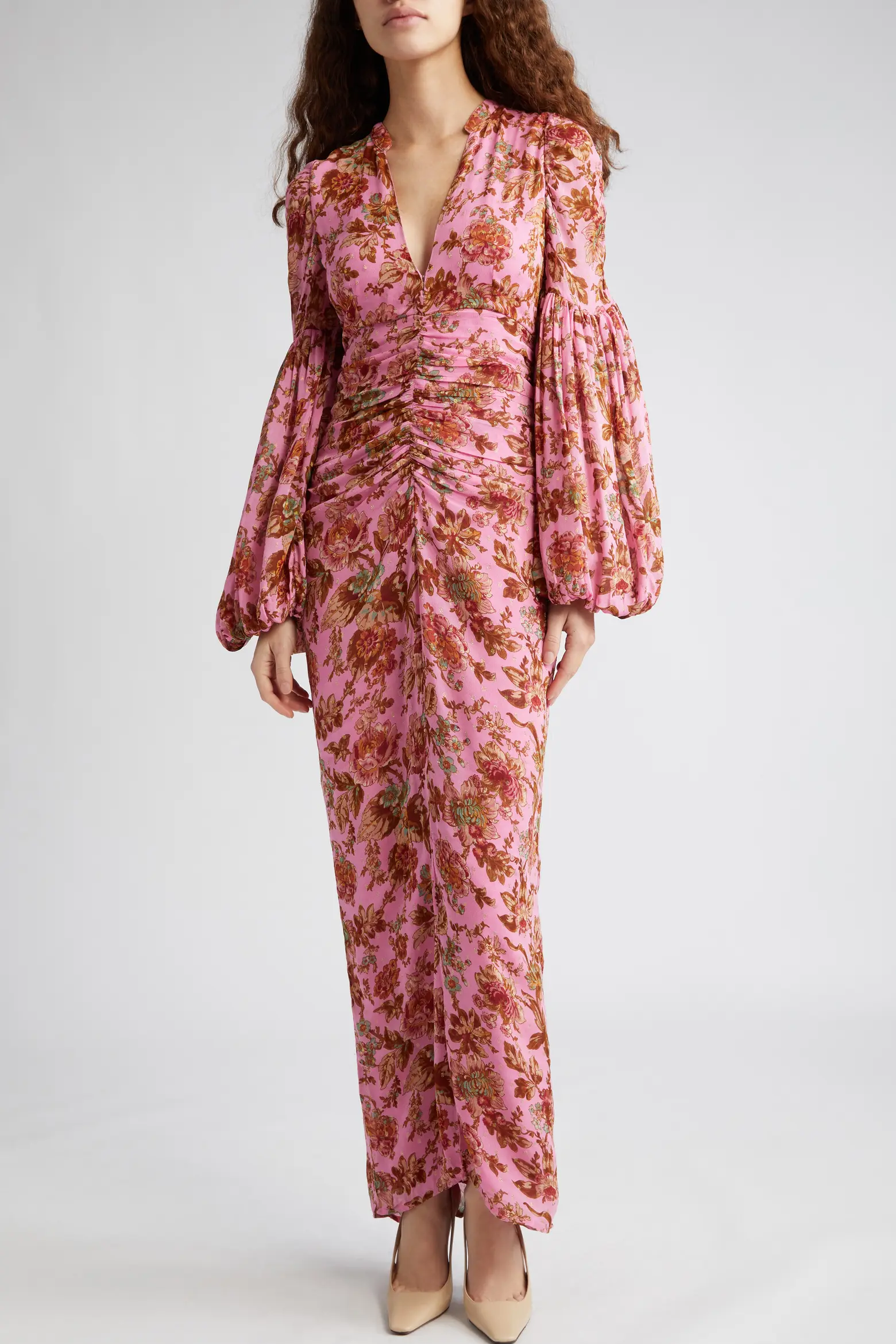 Golden Georgette Rouching Dress | Pink Wallpaper